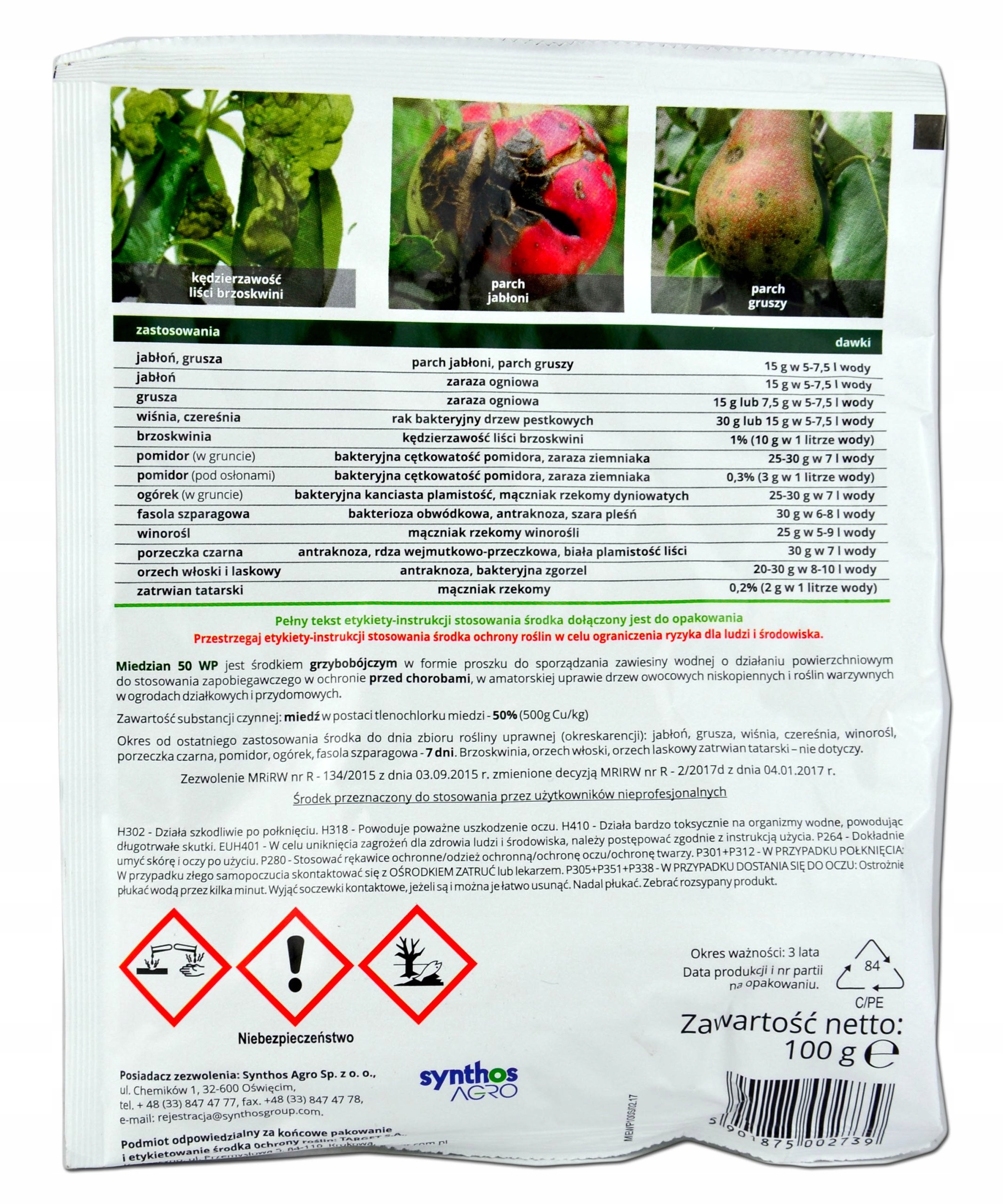 miedzian 50 WP - борьба с заболеваниями фруктовых растений 100 г цели