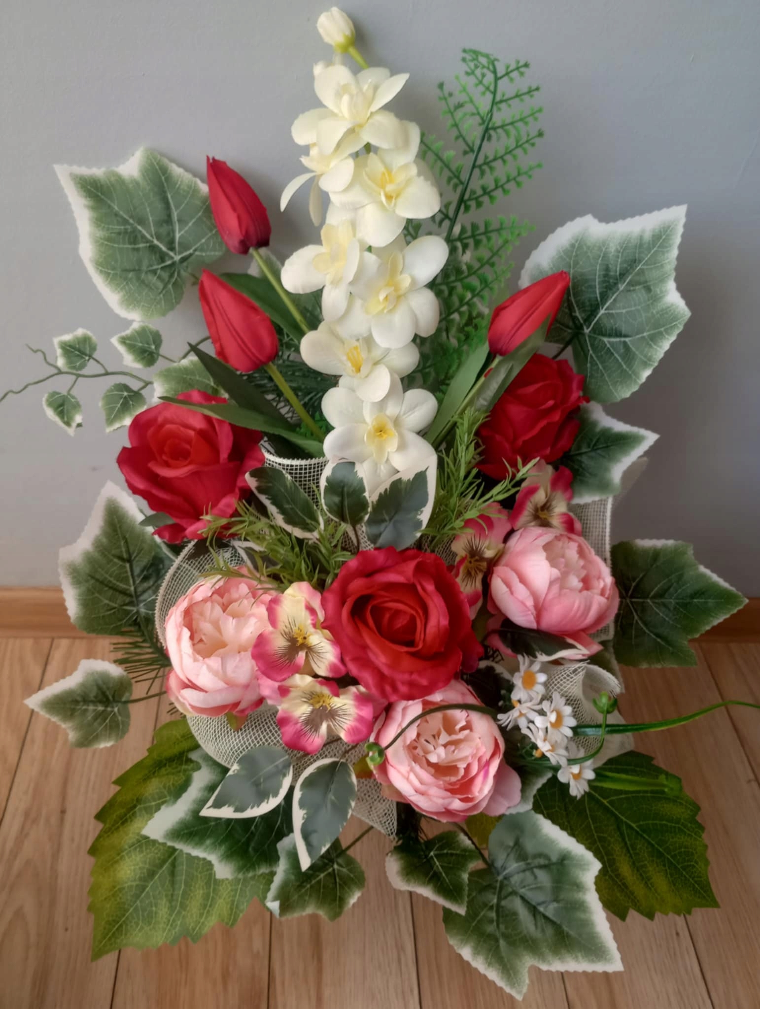 Просматривая «Весенний набор цветов для могилы с букетом из сердечного тростника», вы можете быть уверены, что данный товар из каталога «[rubrica_name]» будет доставлен из Польши и проверен на целостность. В цене товара, указанной на сайте, учтена доставка из Польши. Внимание!!! Товары для Евросоюза, согласно законодательству стран Евросоюза, могут отличаться упаковкой или наполнением.