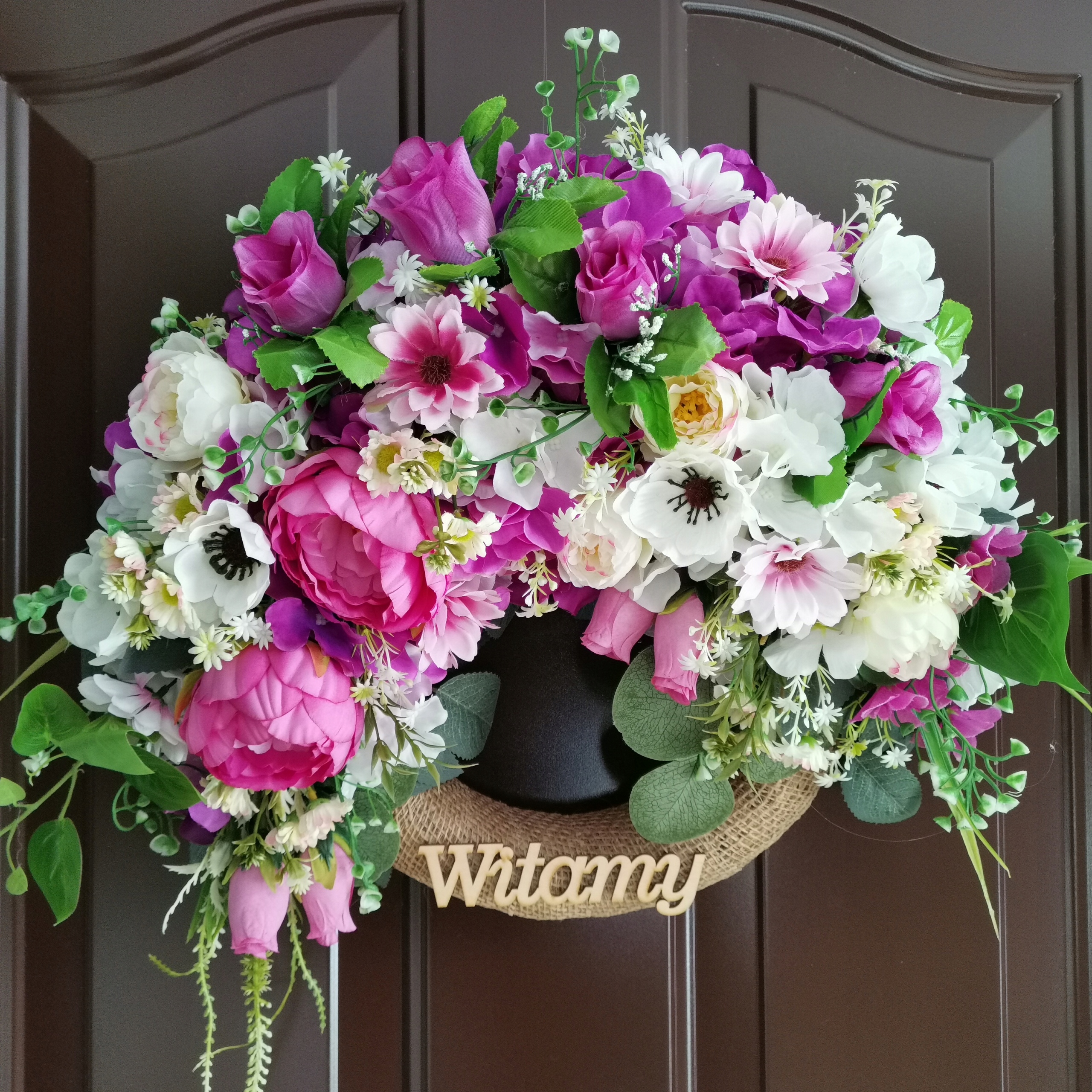 Мы представляем вам ручные декоративные венки в широком ассортименте цветов, украшенных высококачественными искусственными цветами, зелеными ветвями и флористическими аксессуарами.
