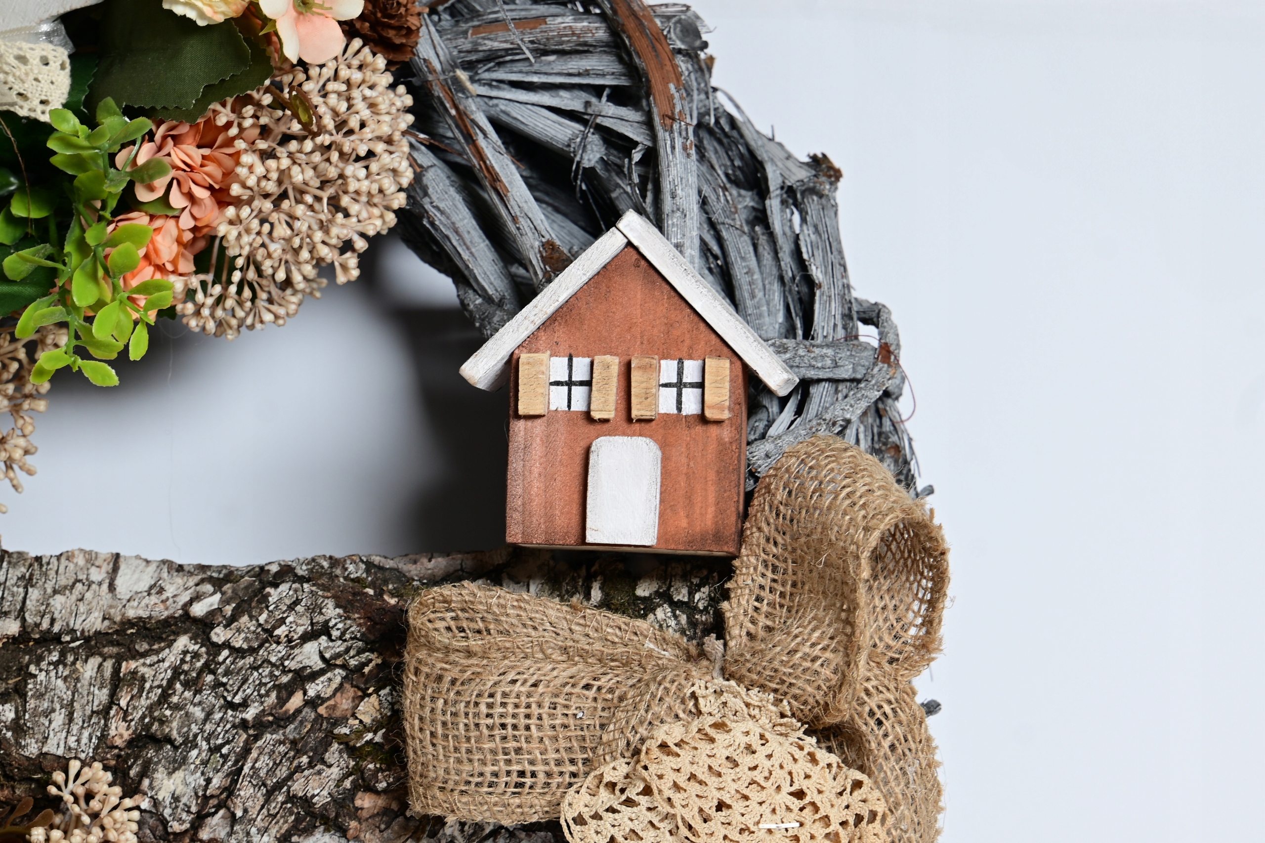 вручную венчил искусственные цветы с добавлением дерева и материала. Идеальное украшение На двери вашего дома! Второй не будет!