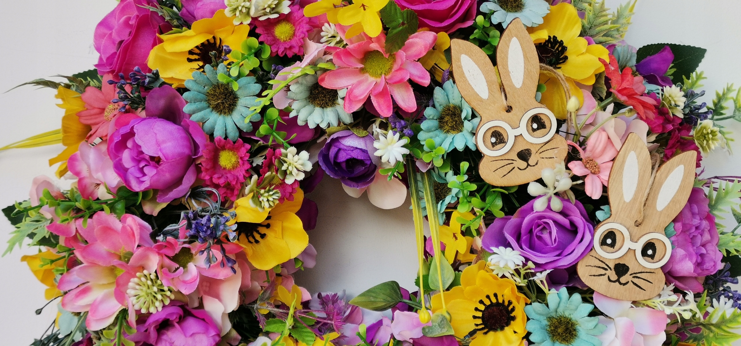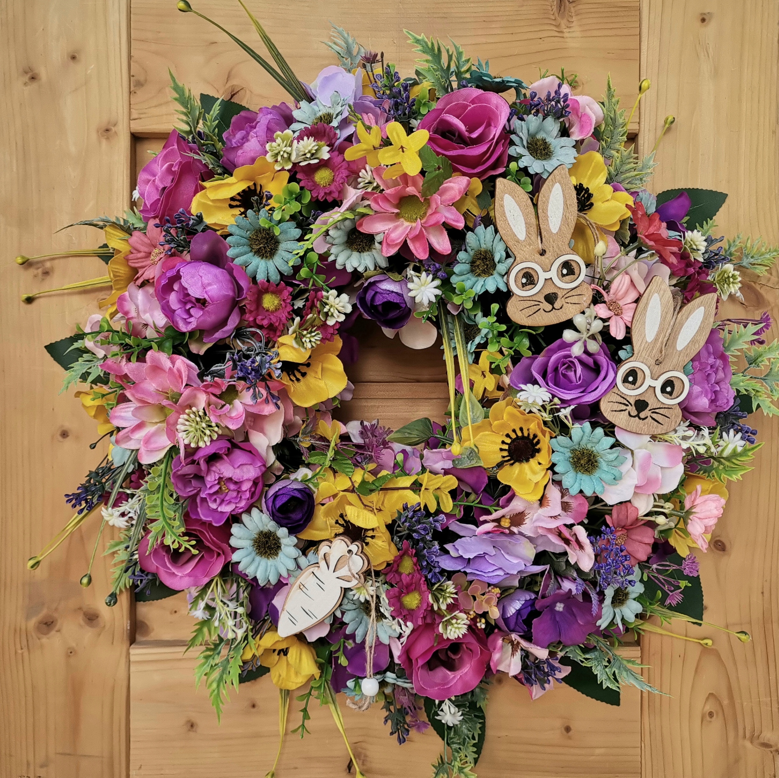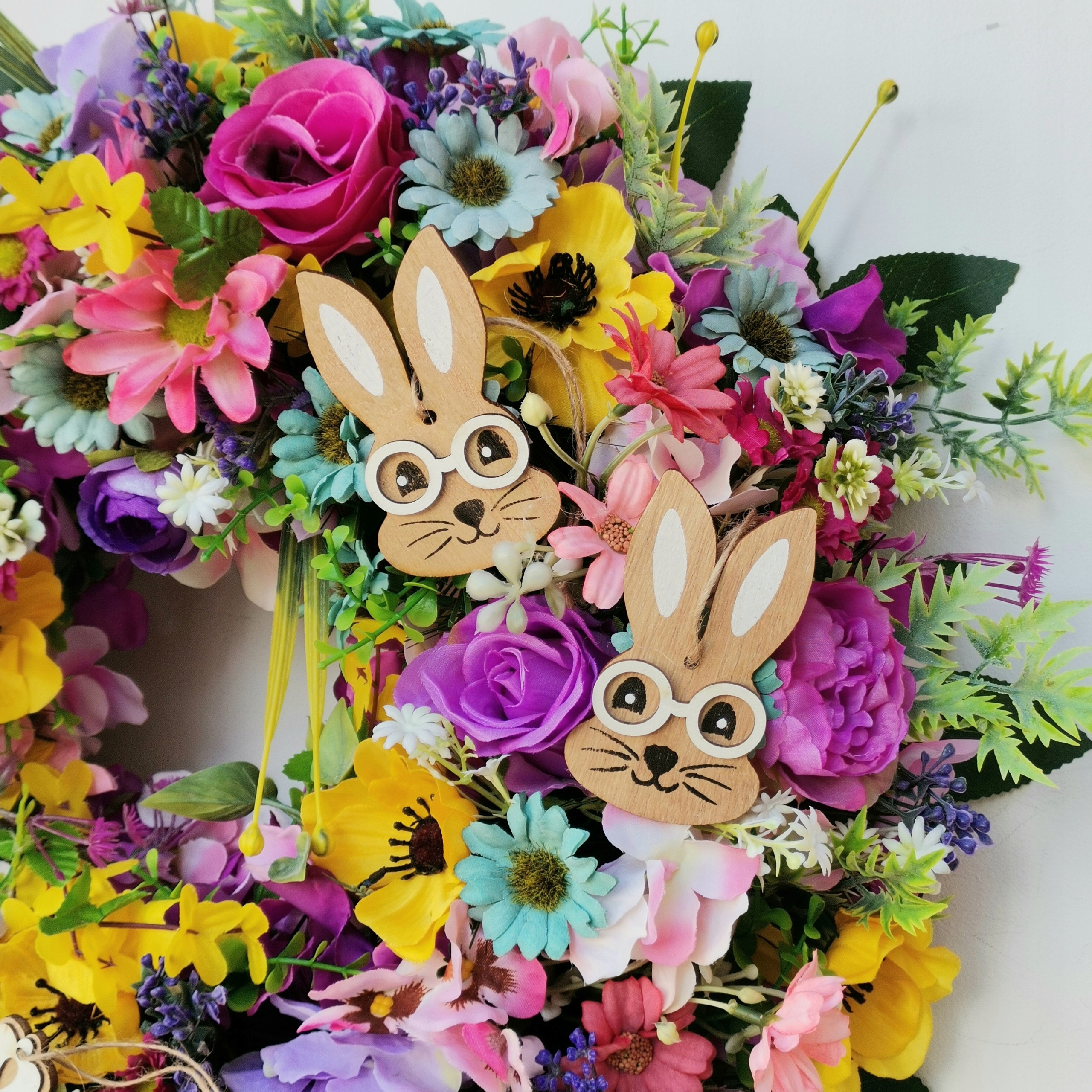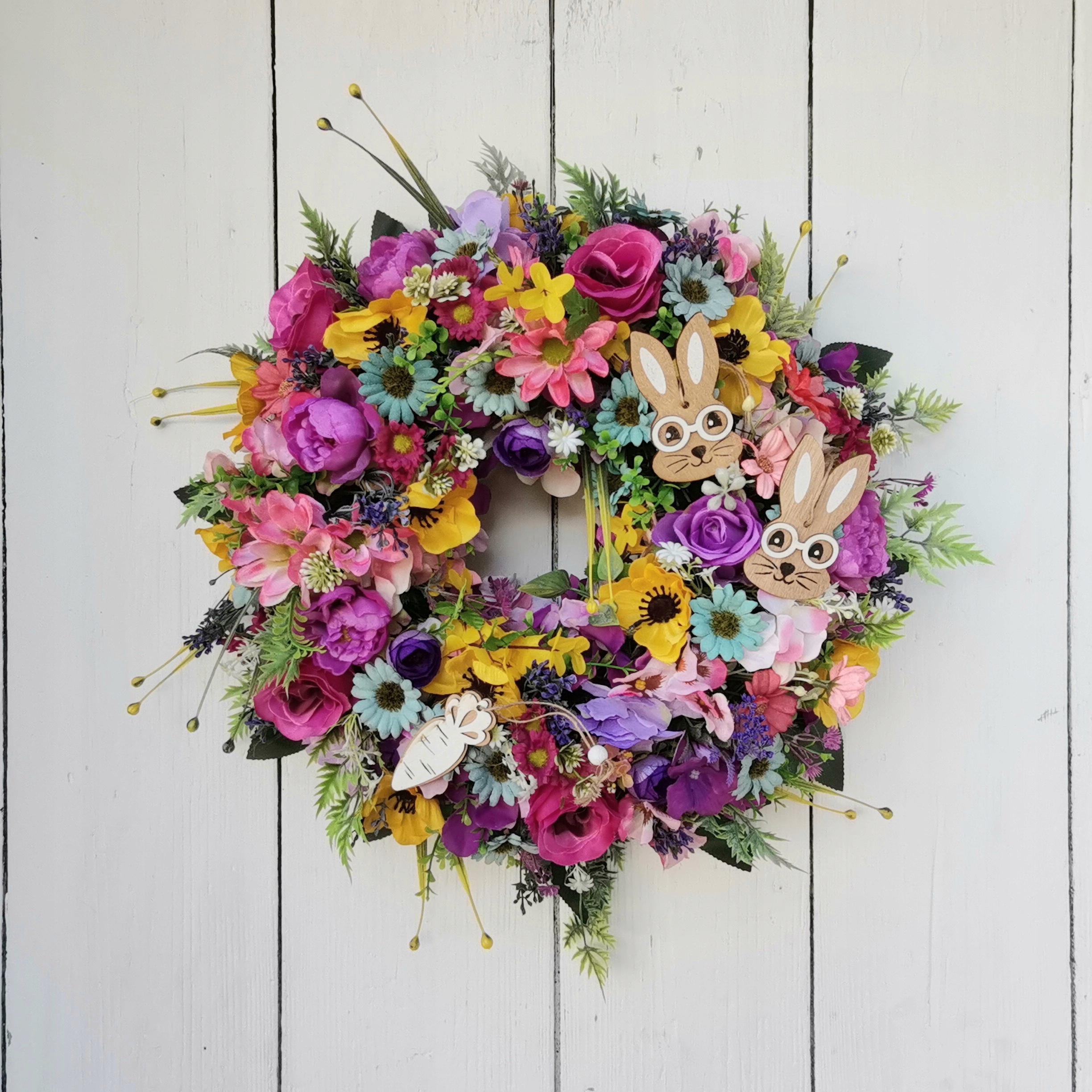Весенний венок Пасха красочные кролики 40 см на двери цветов