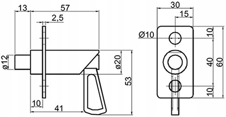 ✔ пружинный блокировка с базой крепления с размерами 60x30 мм