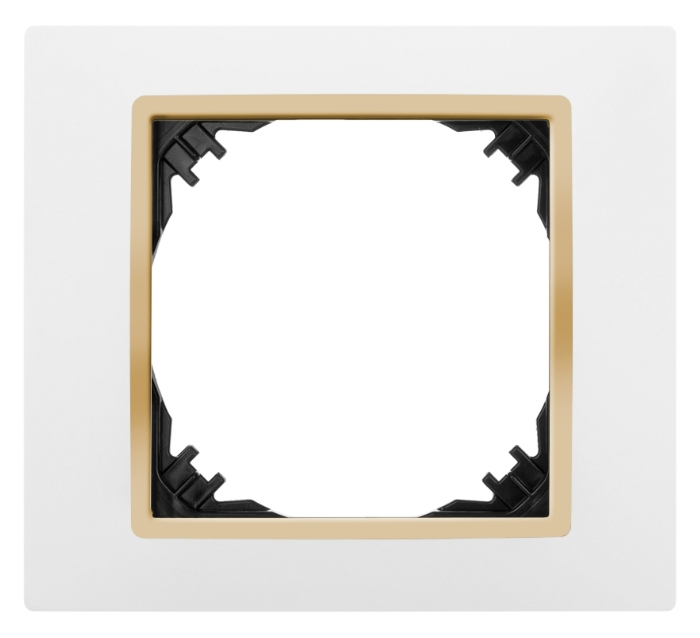 РАМКА VESTRA x1 ОДИНАРНАЯ цвет БЕЛЫЙ/ЗОЛОТОЙ с черной проставкой