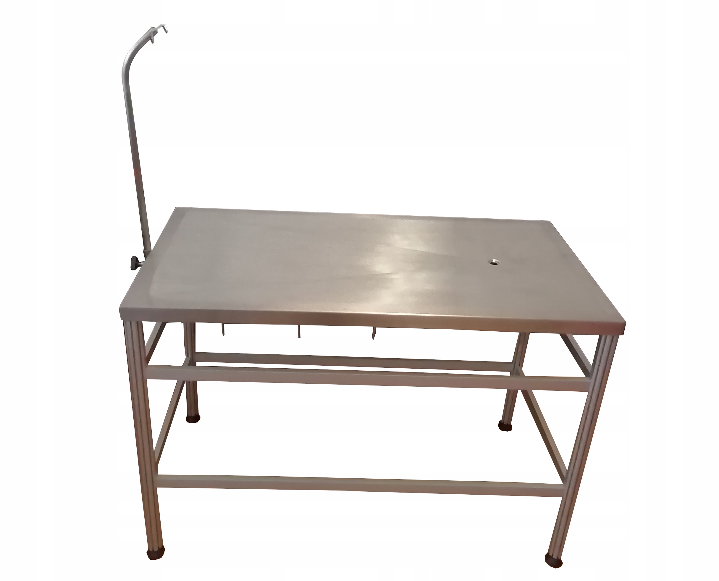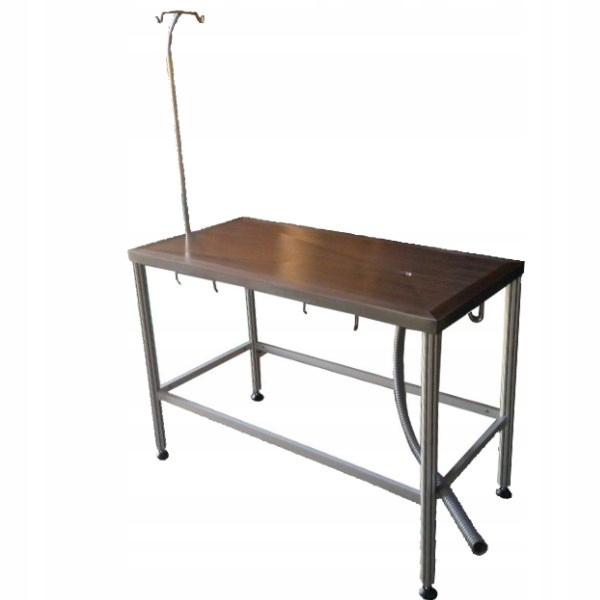 Столешница Изготовлен из высококачественной нержавеющей стали, что делает его устойчивым к ржавчине и всем дезинфицирующим средствам. Форма верха позволяет отводить жидкости организма. Кроме того, смонтированная подставка позволяет удобно наносить инфузионные жидкости.