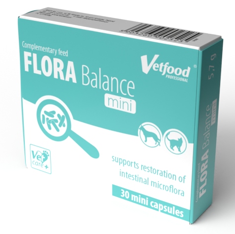 FLORA Balance mini содержит полезные бактериальные культуры в высоких концентрациях и пребиотик (инулин), эти ингредиенты поддерживают правильное функционирование пищеварительного тракта и способствуют восстановлению микрофлоры кишечника. у животных.