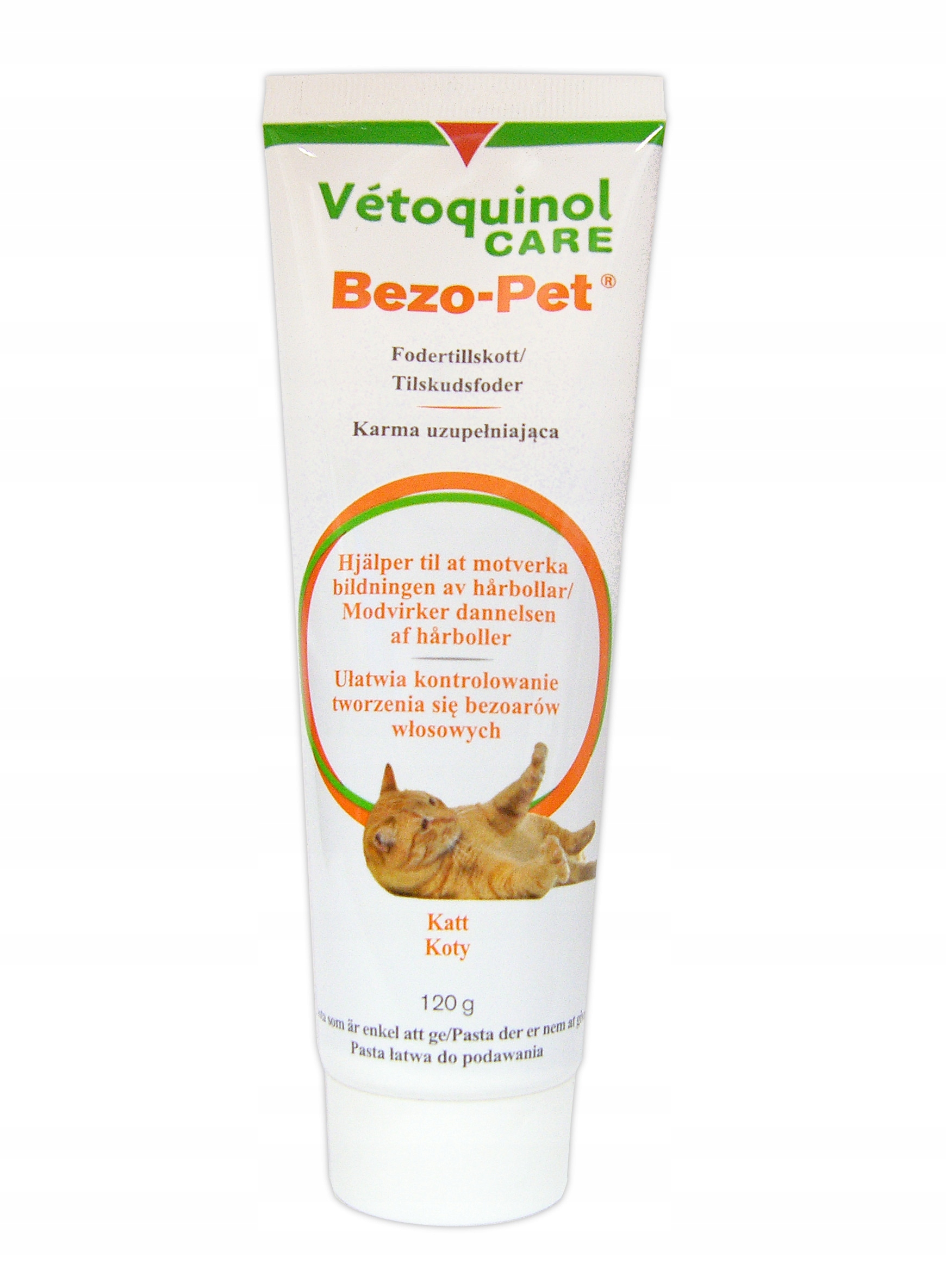 Безо-Пет — это паста, которая предотвращает образование и помогает удалить существующие комки шерсти в пищеварительном тракте. Она обладает сильными смазывающими свойствами и покрывает отдельные волоски, присутствующие в желудке, ограничивая образование безоара. При соответствующей смазке круговые перистальтические движения желудка гарантируют нормальное прохождение пищевого содержимого, что одновременно исключает хроническое раздражение слизистой оболочки желудка безоарами. Регулярное применение особенно рекомендуется длинношерстным кошкам и домашним кошкам, у которых нет доступа к растительной клетчатке (траве), вызывающей рвоту и позволяющей естественным образом удалить инородные тела из пищеварительного тракта. Препарат также помогает при запорах.