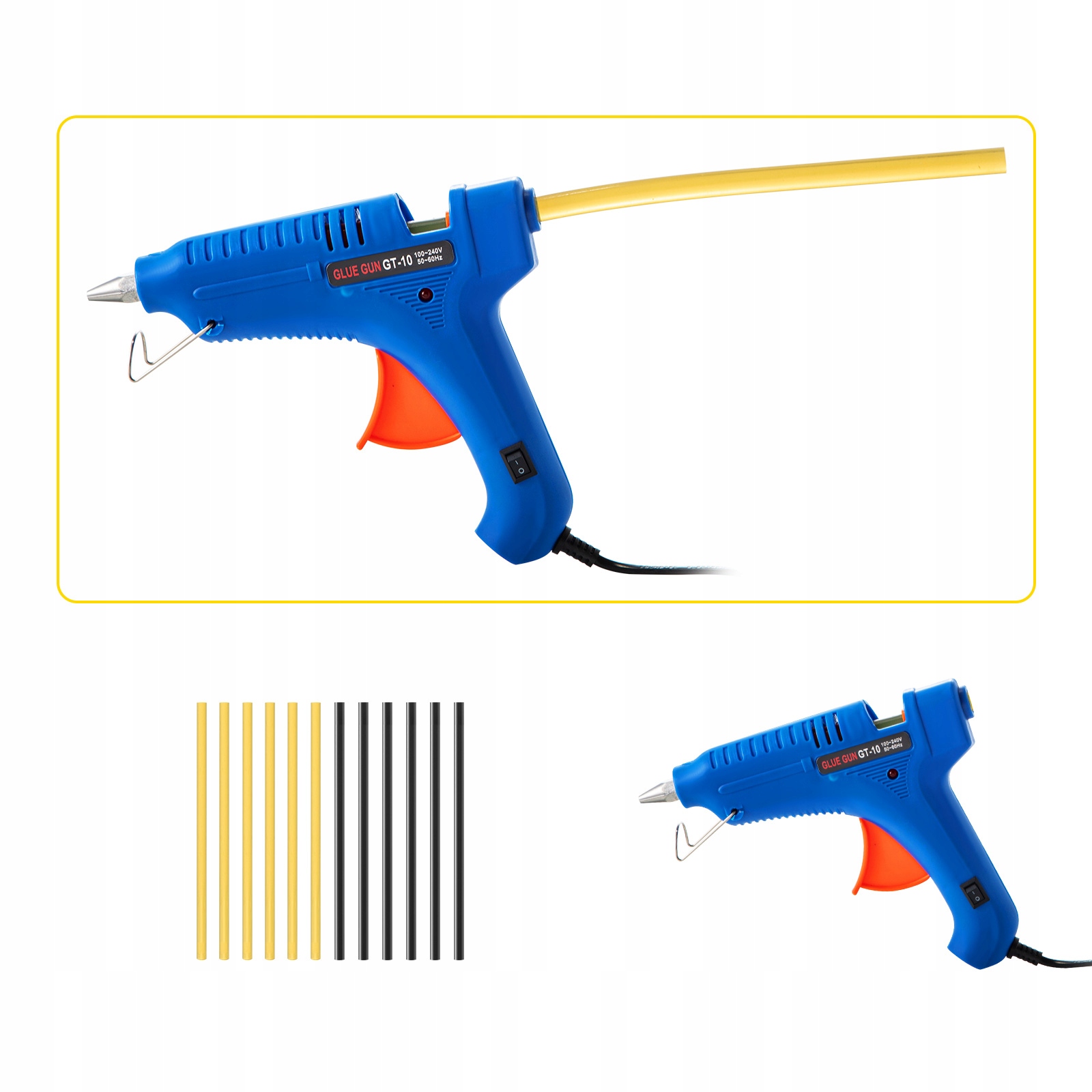 С помощью клеевого пистолета с вилкой европейского стандарта (220 В) можно быстро расплавить клеевые стержни. Это очень безопасно благодаря противокапельной насадке. Упаковка из 12 термоклеевых стержней, нетоксичных и быстро плавящихся, обеспечивает бесперебойную работу благодаря высокой гибкости и стабильности.