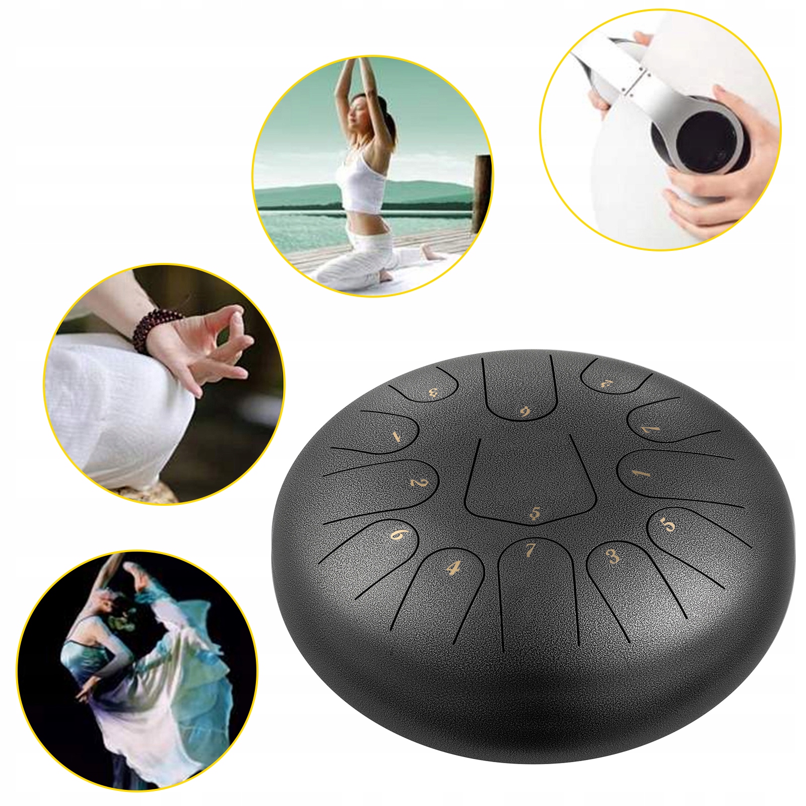 Этот барабан для языка из стали и титанового сплава изготовлен вручную профессиональными мастерами. Несмотря на простую конструкцию, звук очень приятный и напоминает тона Будды. Это облегчает обучение и расширяет диапазон звуков. Даже новички могут легко научиться играть отличную музыку. Он очень подходит для музыкального образования детей, так что они смогут свободно играть и им не будет скучно. В то же время, поскольку его голос очень неземной, его также используют в духовном исцелении и медитации йоги, а также очень помогают успокаивать эмоции людей.