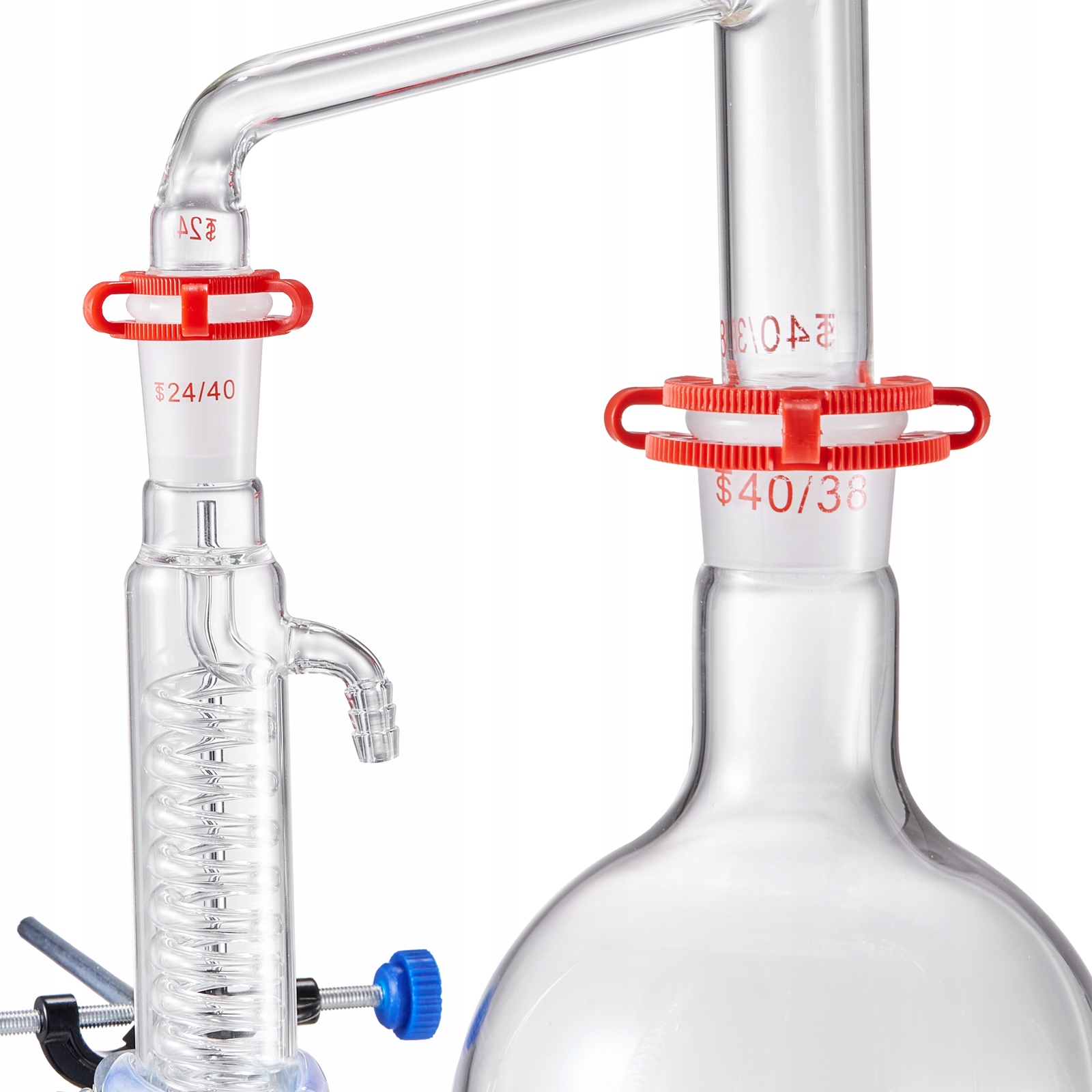 Стандартные соединения 24/40 для легкой установки и замены. Резка обеспечивает лучшую герметичность, обеспечивая чистоту перегонки.