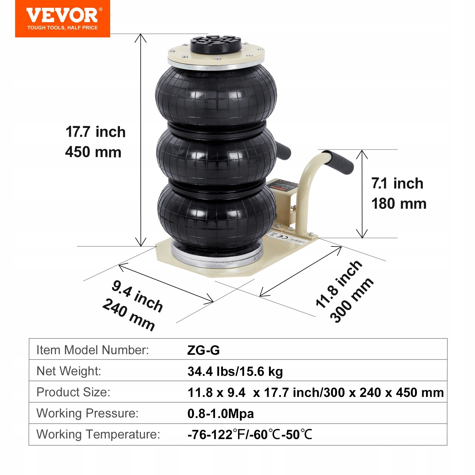 ПОРТАТИВНЫЙ ПНЕВМАТИЧЕСКИЙ ПОДЪЕМНИК VEVOR ТРОЙНОЙ ТРОМБА 3Т 140-450ММ