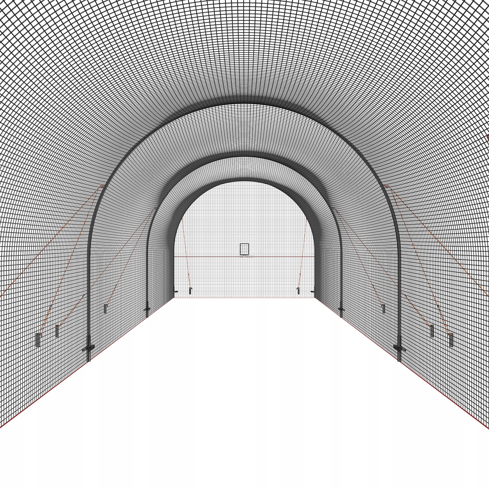 Идеальная клетка для отбивания бейсбольного мяча, летящего со скоростью 90 миль в час, с помощью подающей машины. Конструкция содержит множество укрепляющих земляных шипов, обломков и мусора.