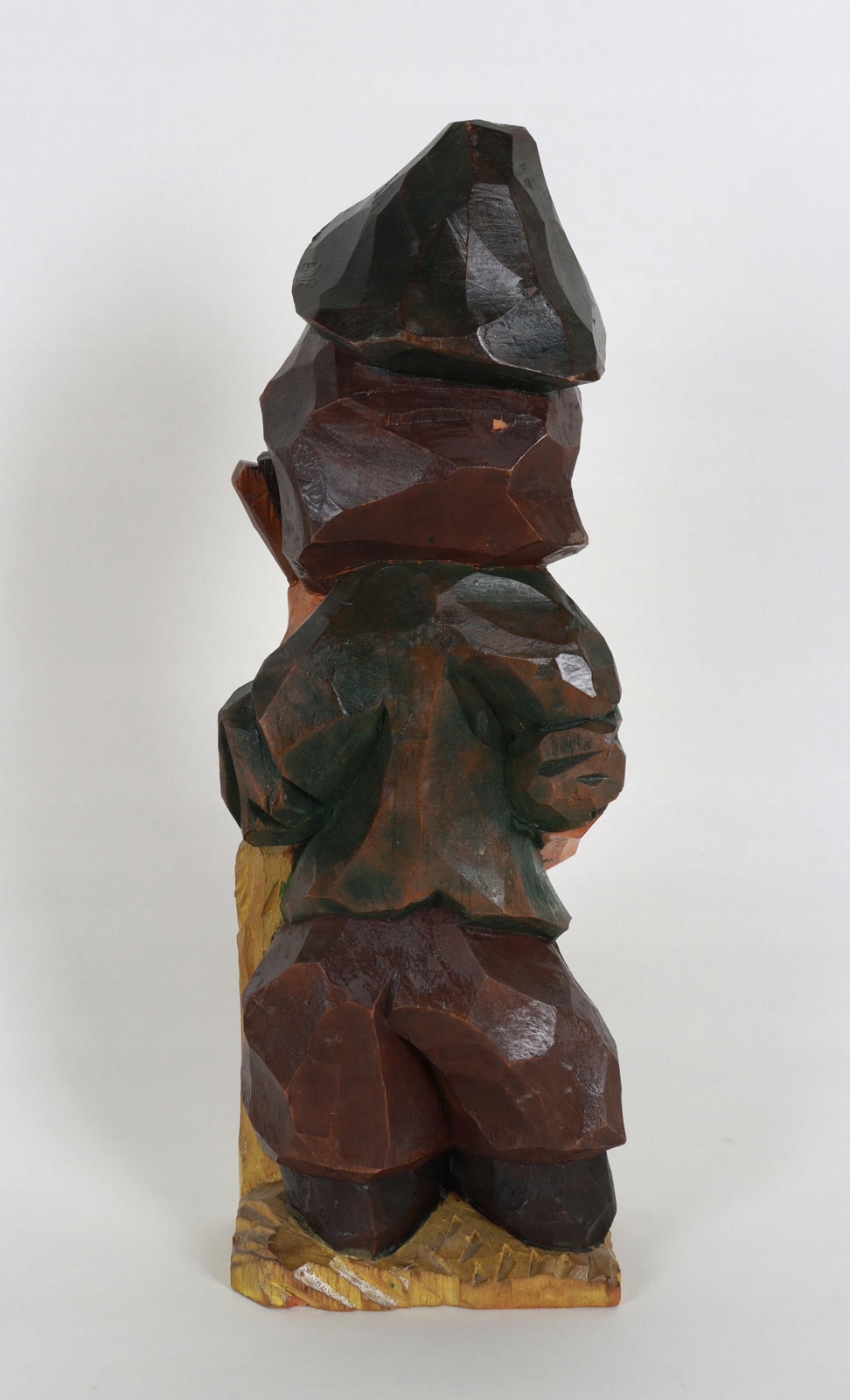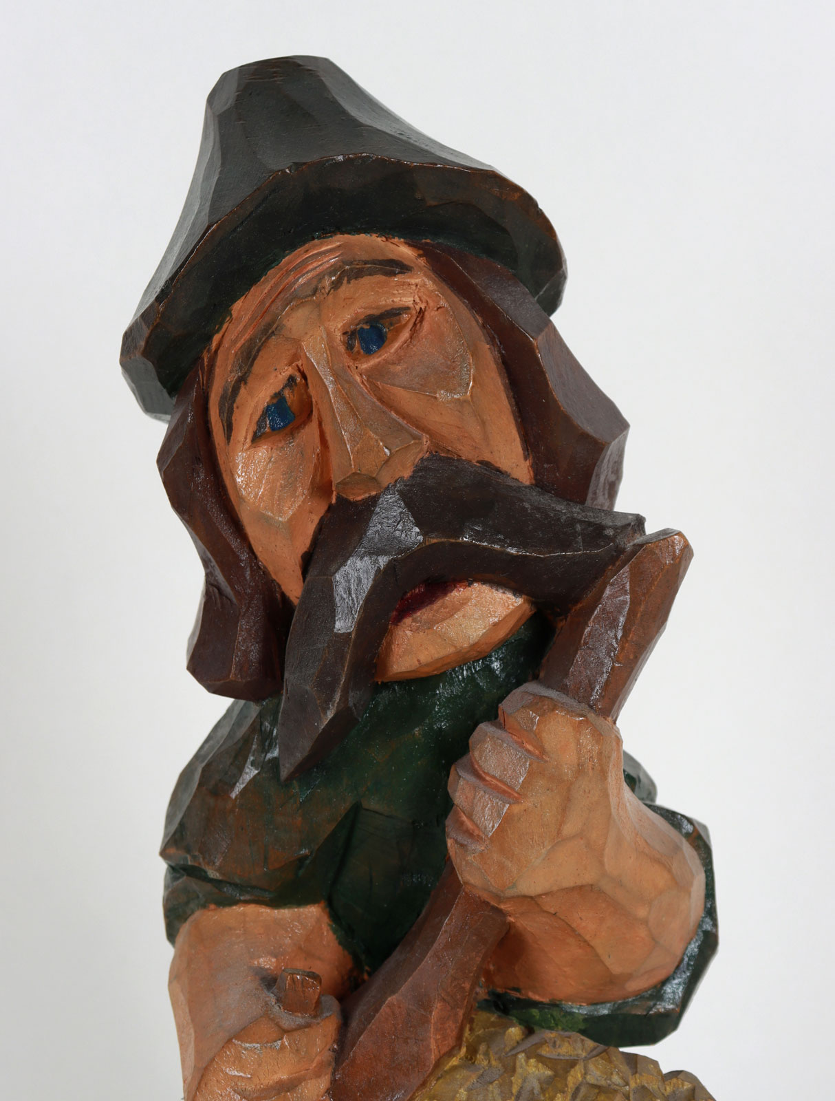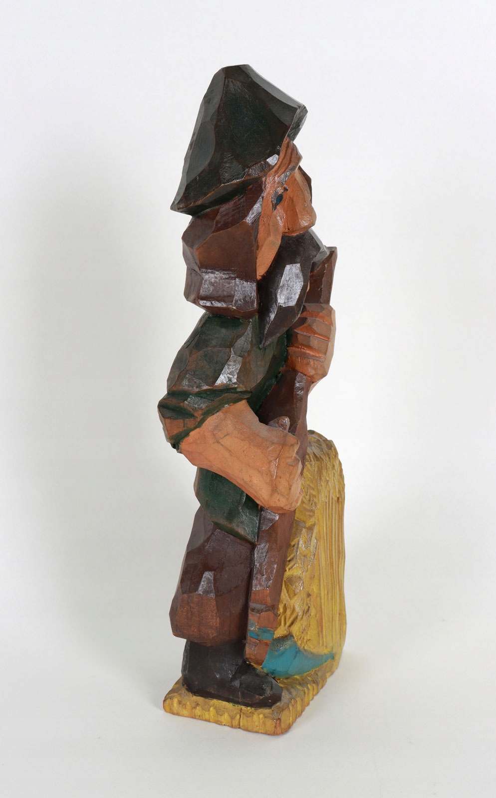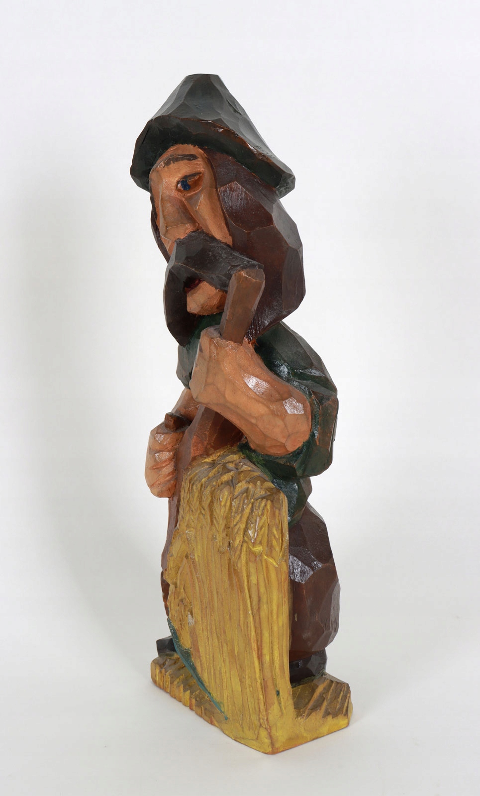 Статуэтка из древесины липы, изображающая человека с косой рядом с зерновым полем.