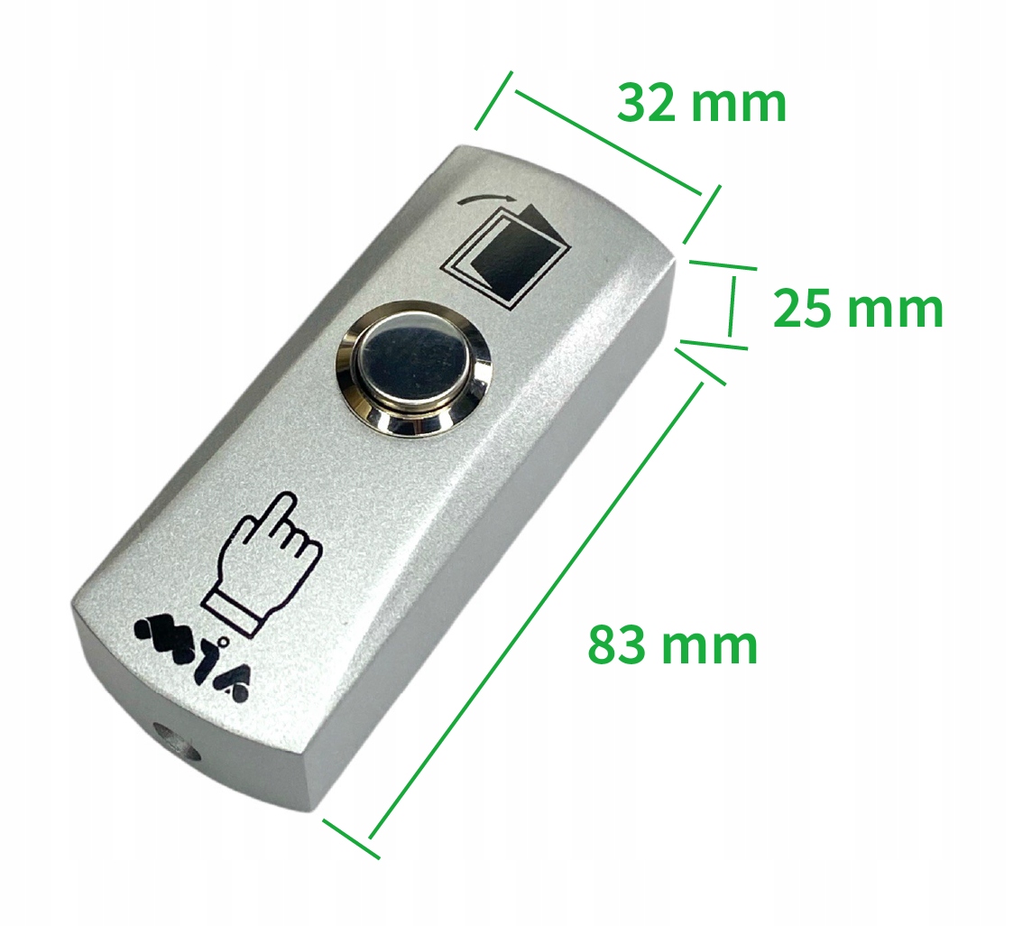 Малые размеры кнопка для работы в системах управления доступом. Это позволяет открывать двери, оснащенные Solemase. емкость нагрузки: 3A/36 В постоянного тока. Контакт: нет/com.