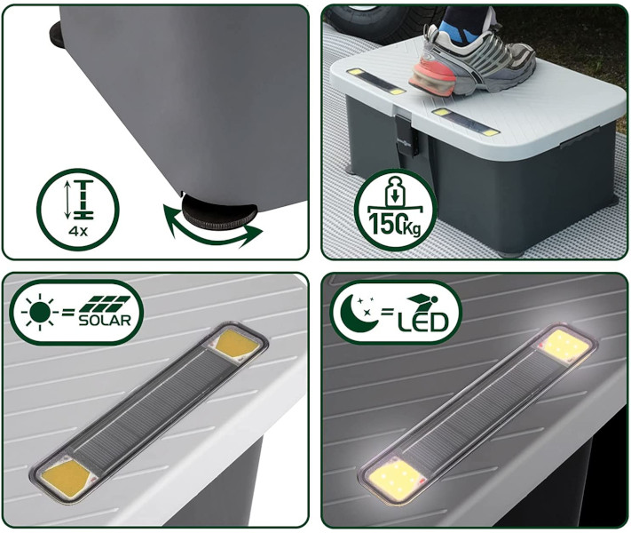 - Крышка оснащена встроенным фонарем на солнечной энергии< /li>