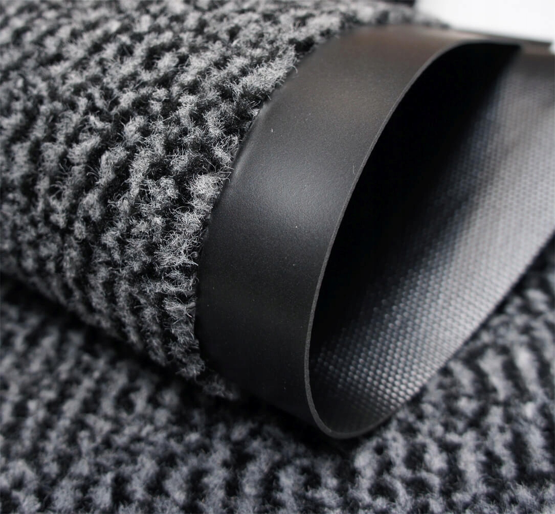 Коврик изготовлен из полипропилена. Есть резиновый край шириной около 3 см. Материал, из которого он изготовлен, эффективно задерживает грязь, заносимую в помещения обувью, а также очень хорошо впитывает влагу. Изделиепрочное и устойчивое к повреждениям. Коврик имеет резиновое дно, поэтому он не двигается и не скользит по полу. Он будет хорошо смотреться как перед входной дверью в квартиру, так и на больших поверхностях, таких как вход в магазин или другие служебные помещения.