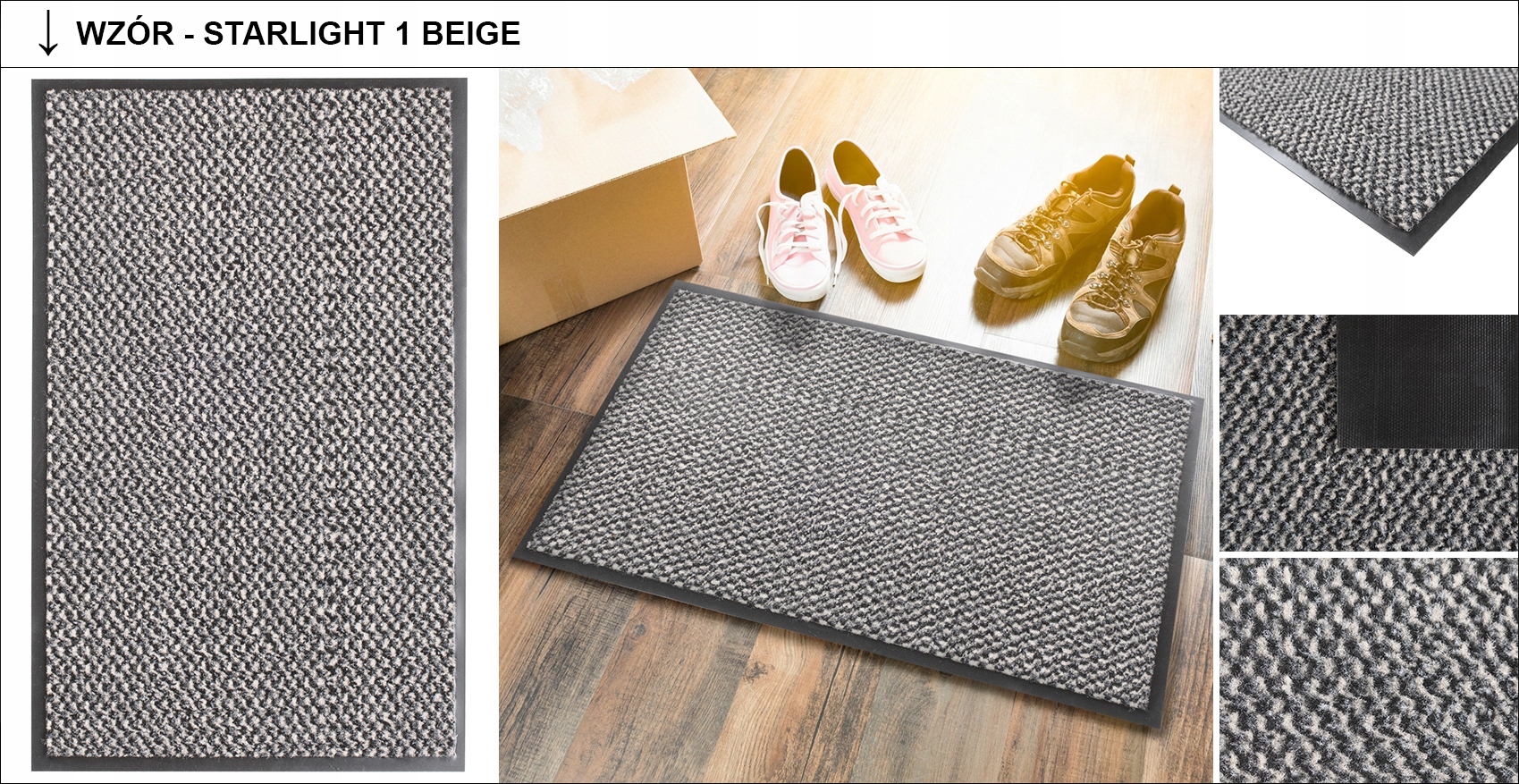 Коврик изготовлен из полипропилена с т.н. Резиновая кромка шириной 2,5 см. Его волокна прекрасно и эффективно задерживают всю грязь, заносимую обувью в помещения, и очень хорошо впитывают влагу. Высокое качество материала, из которого он изготовлен, делает его прочным и устойчивым к повреждениям. Коврик имеет резиновое дно, предотвращающее его скольжение.