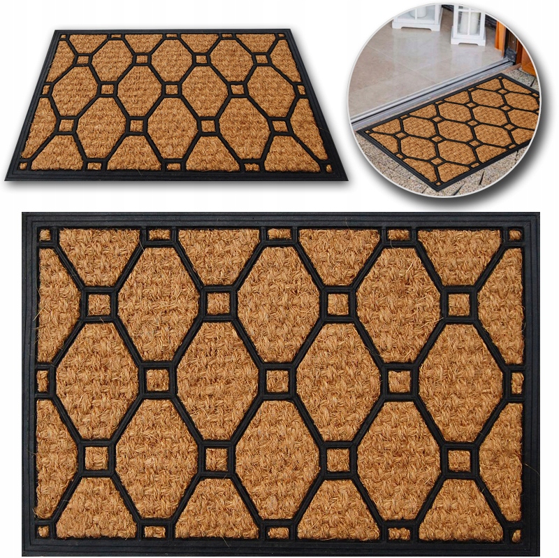 - Коврик изготовлен из натурального кокосового волокна и высококачественной резины, обеспечивающей противоскользящие свойства.