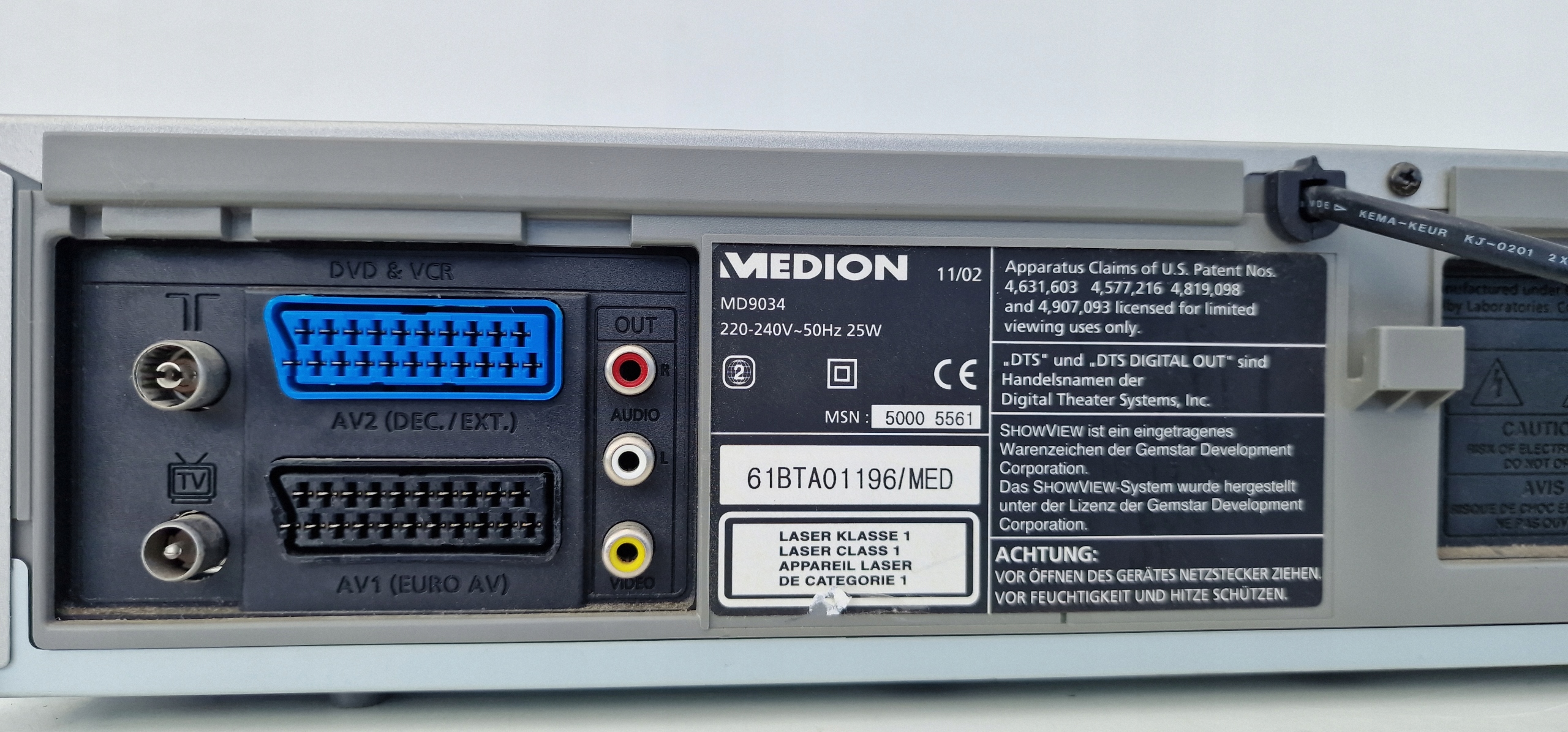 VHS VHS DVD -плеер Kombo Medion MD 9034 VCR MP3