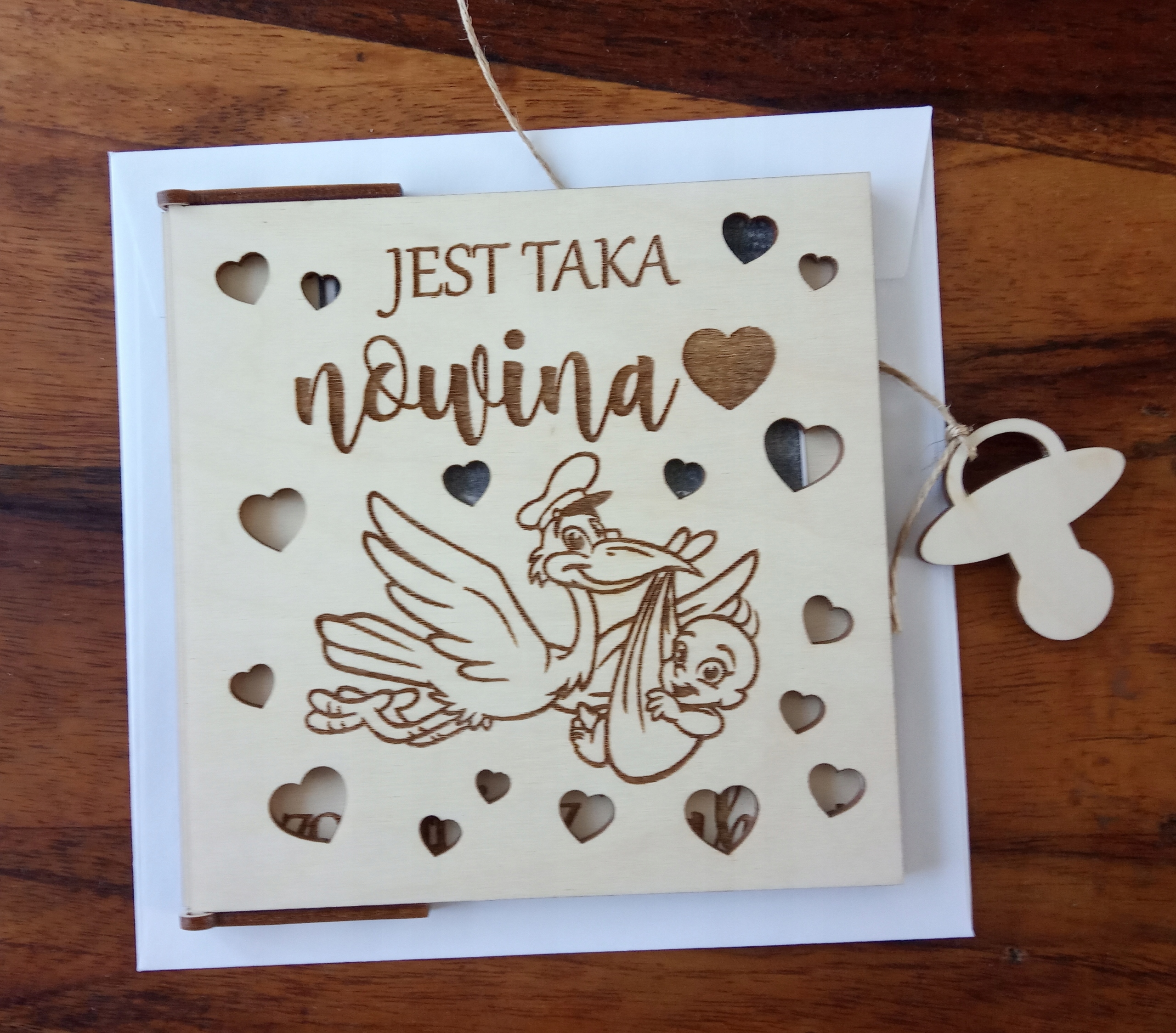 Наша деревянная открытка – отличный способ поделиться радостные новости для ваших близких.