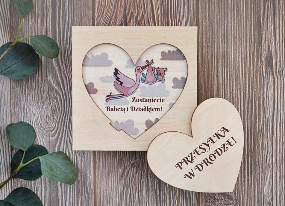 Деревянная открытка с возрастом в форме сердечка для будущей бабушки и будущего дедушки или для любого другого человека. Удивите своих близких и сообщите хорошие новости уникальным способом.