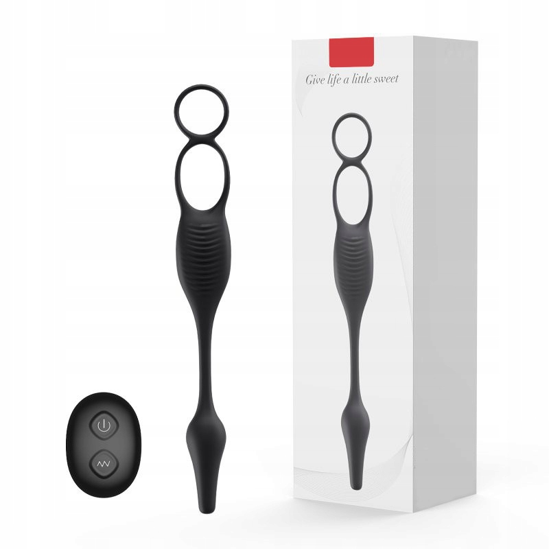 Вибрирующая анальная пробка с двумя моторами и кольцами для члена и яичка. Моторы располагались по одному в анальном зонде и в средней части - промежностном стимуляторе. Использование двух колец продлит продолжительность полового акта у мужчин и усилит эрекцию. Управлять гаджетом можно с помощью расположенной на нем кнопки или с помощью беспроводного пульта дистанционного управления. Вилка с кольцами имеет встроенный аккумулятор, заряжаемый с помощью прилагаемого USB-кабеля.