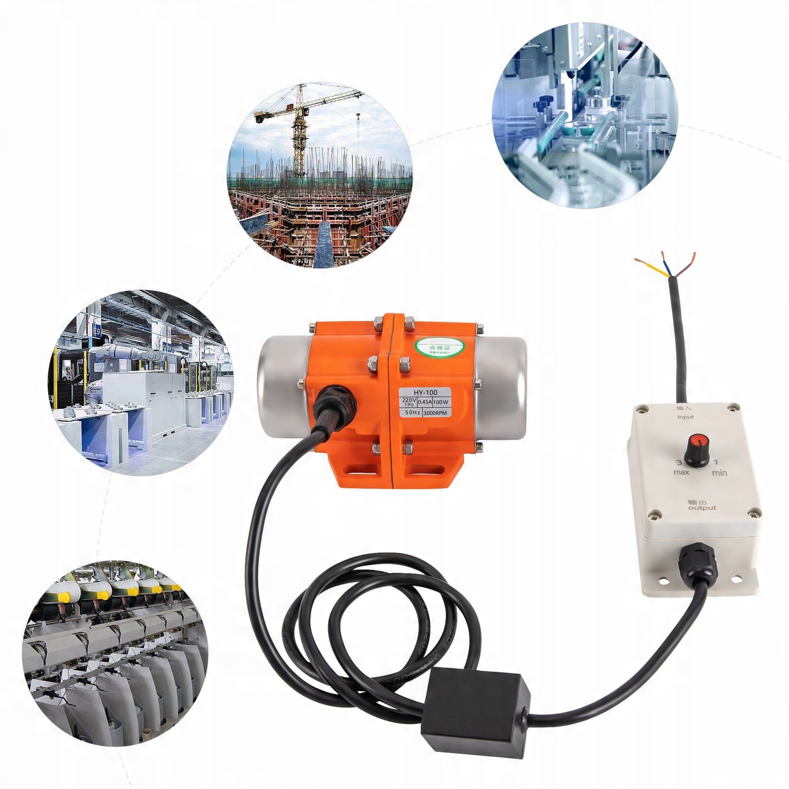 ВІБРАЦІЙНИЙ ДВИГУН 100ВТ З РЕГУЛЯТОРОМ ШВИДОК 220В