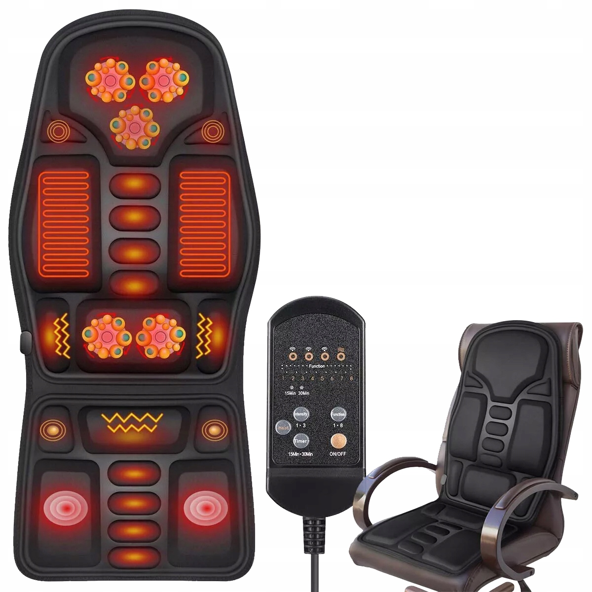 использует 8 мощных функций массажа для проникновения в глубину верхней части спины, нижней части спины, ягодиц и бедер, обеспечивая успокаивающее вибрационное массаж, что помогает снять усталость, расслаблять мышцы и устранять напряжение, вызванные ежедневными сутиторами и травмами при высоких расстояниях. Усталость.