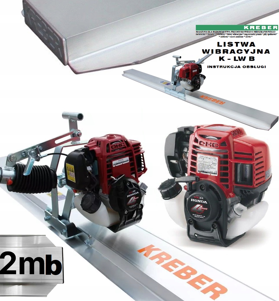 K R E B E R K-LW B бензиновая виброрейка для бетона и полов на базе 4-тактного двигателя Honda.