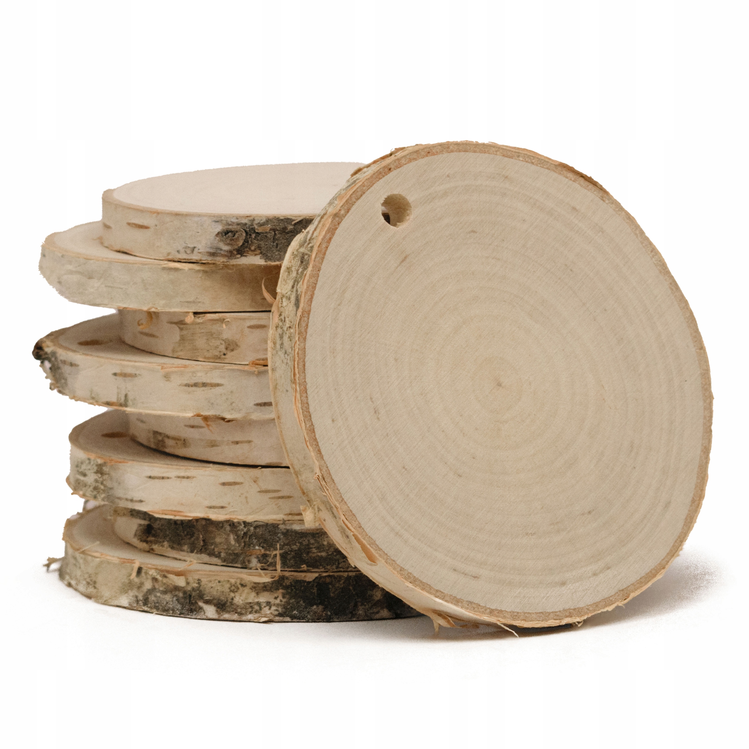 Кусок березы диаметром 8-9 см, толщина 1 см, высокое качество, полированные с двух сторон с отверстием - 50 шт.
