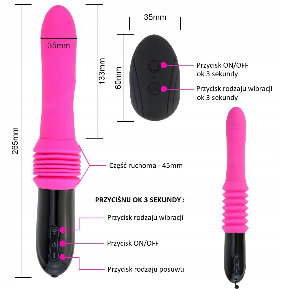 Одна из самых мощных секс-машин для домашнего использования на рынке. Изготовлен из материала очень хорошего качества, подтвержденного и отмеченного сертификатом CE. Имеет 7 режимов вибрации и 3 режима скользящего движения. Мастурбатор с фаллоимитатором - свою уникальность приобретает благодаря поршню, совершающему скользящие движения на глубину до 4,5 см, и трем вращающимся шарикам, установленным на нем, увеличивающим ваше удовольствие во время игры. Управление устройством осуществляется с помощью удобного пульта дистанционного управления, что обеспечивает удобство использования. Дополнительным преимуществом является современный дизайн и простота использования.