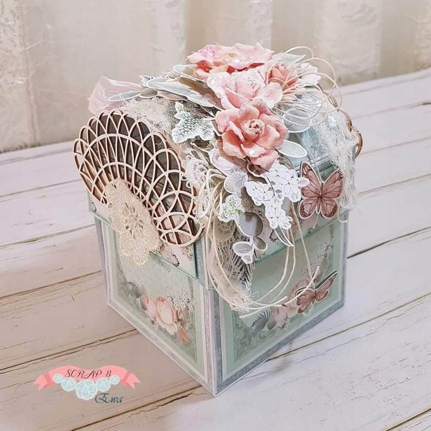 Взрывающаяся коробка 10x10x10см скрап8 белый