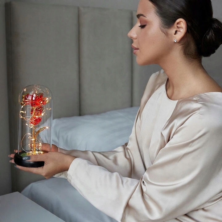 ВЕЧНЫЙ ЦВЕТОК РОЗЫ В СВЕТОДИОДНОМ СТЕКЛЕ ПОДАРОК К ВАЛЕНТИНУ