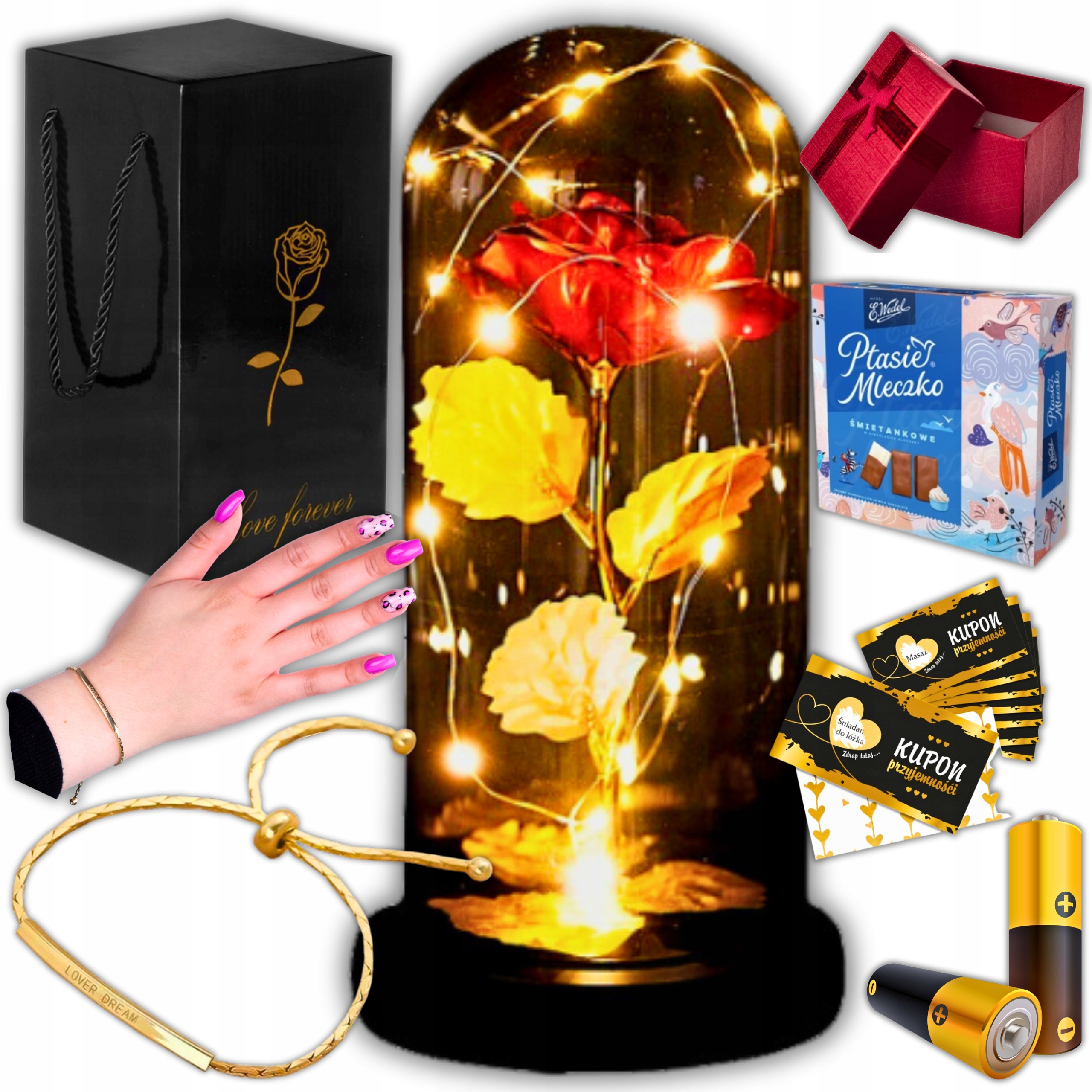 Вечная роза, сияющая в браслете 7IN1 светодиодного ящика для идеи Валентина