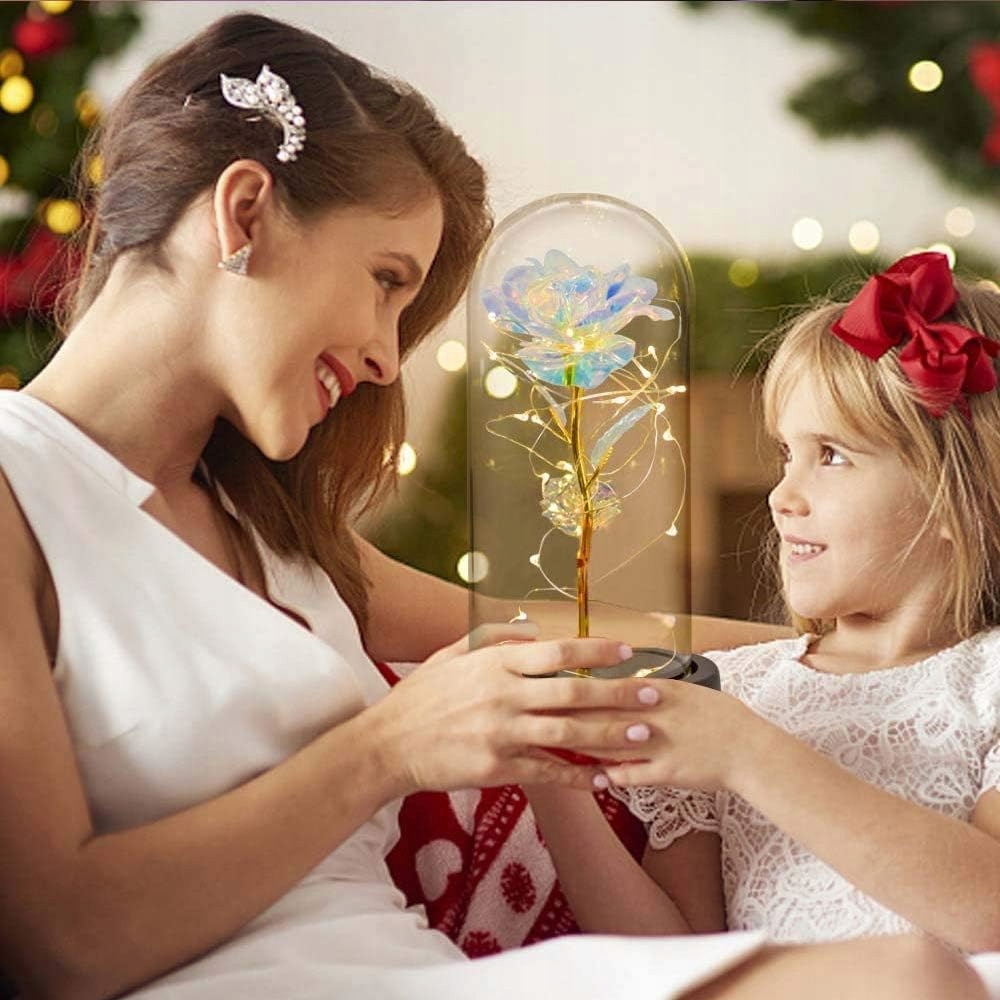 ВЕЧНАЯ РОЗА ПОД ЗАКРЫТЫМ ХРУСТАЛОМ СВЕТОДИОДНЫЙ ПОДАРОК НА ДЕНЬ ВАЛЕНТИНА МАТЕРИ WR1