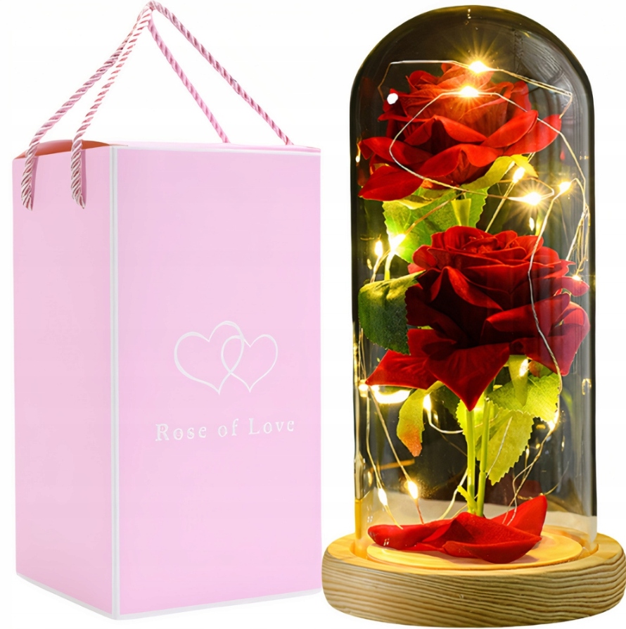 ВЕЧНАЯ РОЗА В СТЕКЛЕ, СВЕТЯЩАЯСЯ ПОДАРОЧНАЯ КОРОБКА