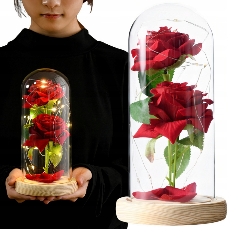 ✅ Искусственные лепестки роз выглядят текстурированными и равномерно окрашенными, круглое основание устойчиво, а прозрачный стеклянный купол предотвращает цветок от скопления пыли.