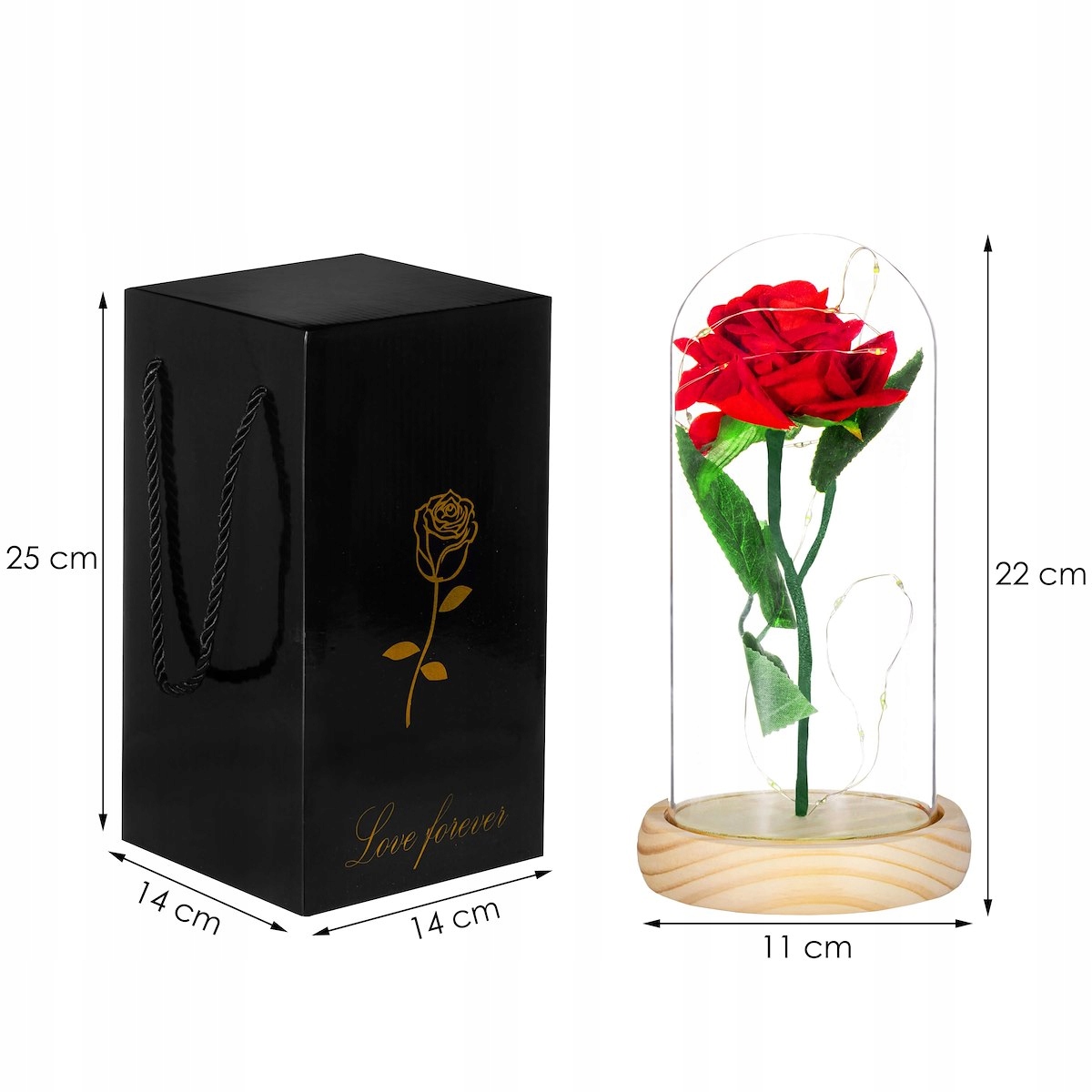 - Красивая роза , скрытая под стеклом , украшенная светодиодными лампами и упакованной в минималистском, но очень элегантная коробка , безусловно, будет впечатляющим. Весь выглядит роскошно , необычно и загадочно - вам не нужно делать ничего больше, чем просто удивлять получателя, вручив ему сюрприз.