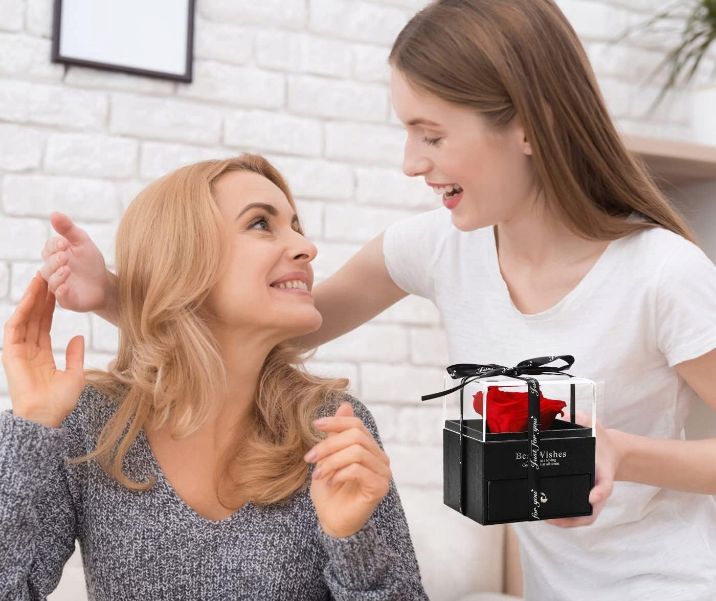 ✔ Полный подарочный набор: Набор содержит вечную розу в гробу, ожерелье, подарочный пакет и карту для пожеланий