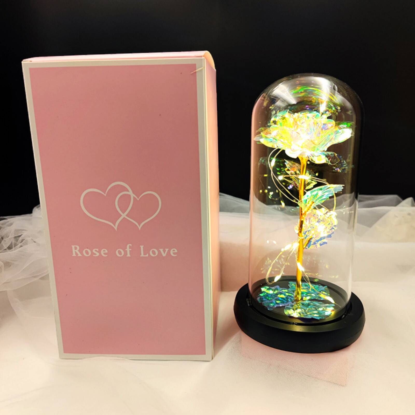 Вечная роза в стеклянной ночной лампе подарок для женщины для женщины сияет светодиод