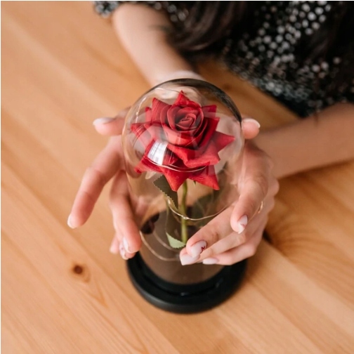 Украшение вечной розы в стекле выполнено вручную с тщательностью и вниманием к деталям. Продукт был специально разработан с учетом самых высоких стандартов качества.