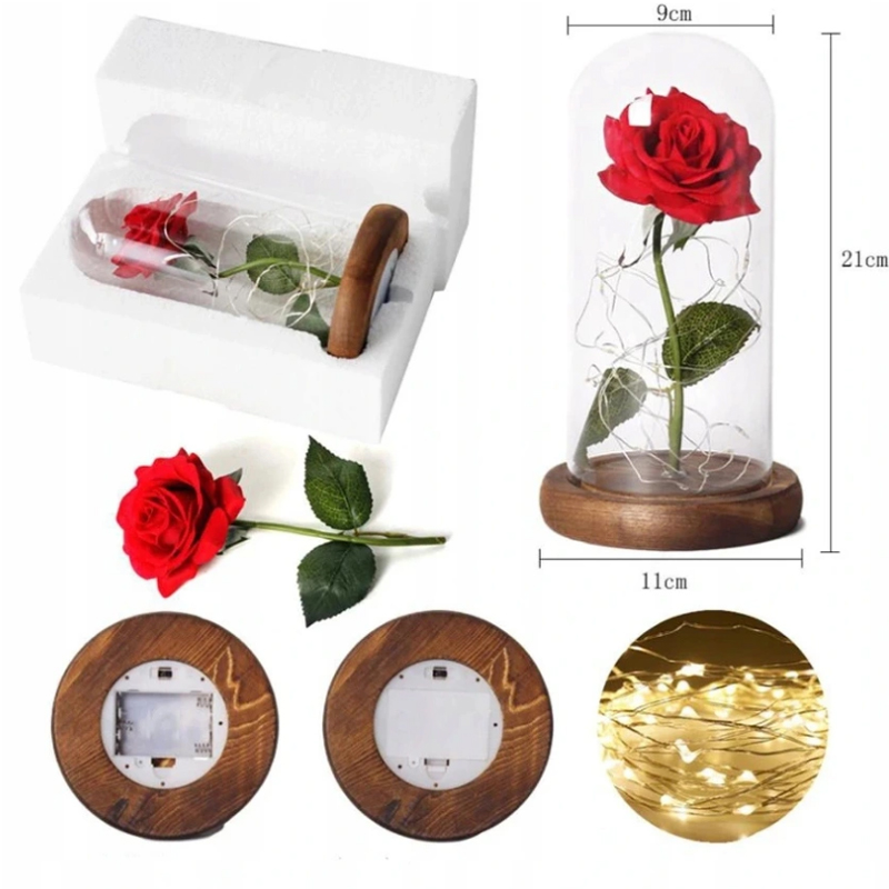 Вечная роза в стекле, красная цветочная коробчатая роза LED