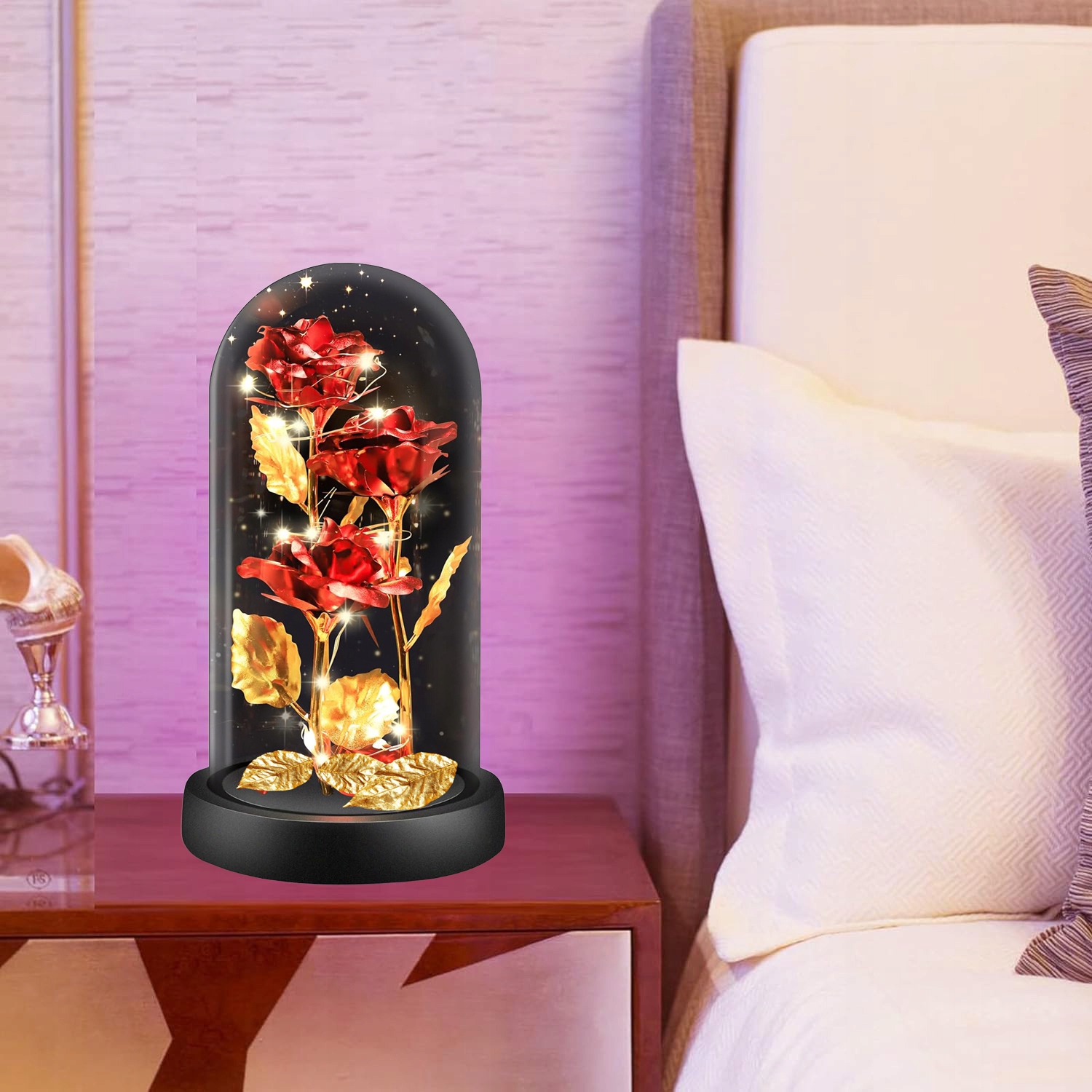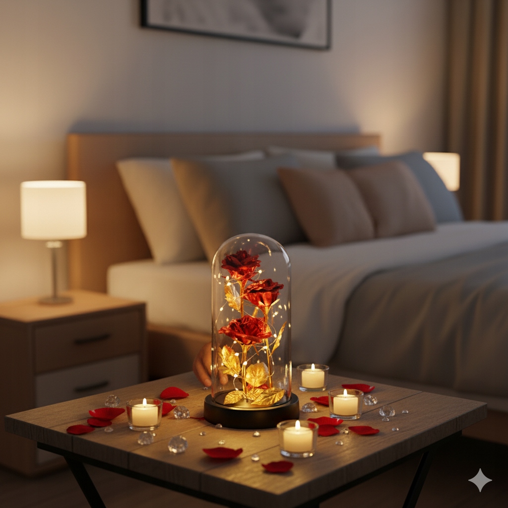 Стеклянный купол также может усилить символическое послание вечной розы, подчеркивая ее неизменную природу и долговечность, заключенную в красивой и защитной среде.