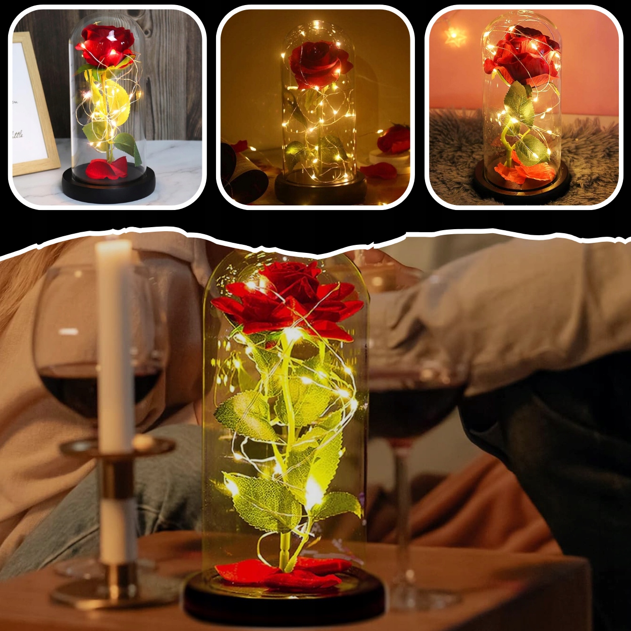ВЕЧНАЯ РОЗА В СТЕКЛЕ, СВЕТЯЩИЙСЯ СВЕТОДИОДНЫЙ РОЖДЕСТВЕНСКИЙ ПОДАРОК, КАК НАСТОЯЩИЙ, КОРОБКА