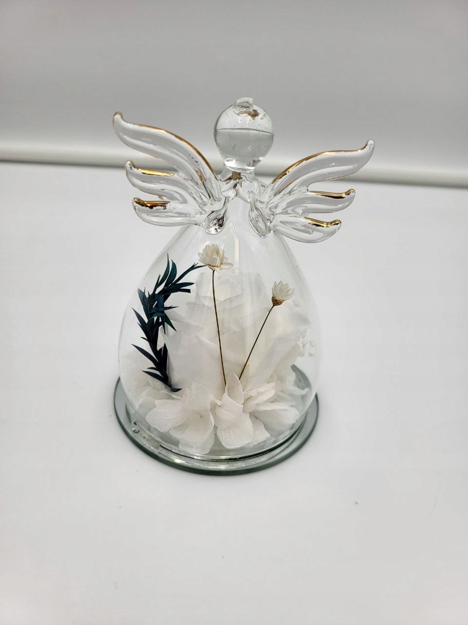 Вечная роза в стеклянном светодиодном украшении украшения ангела без ореола