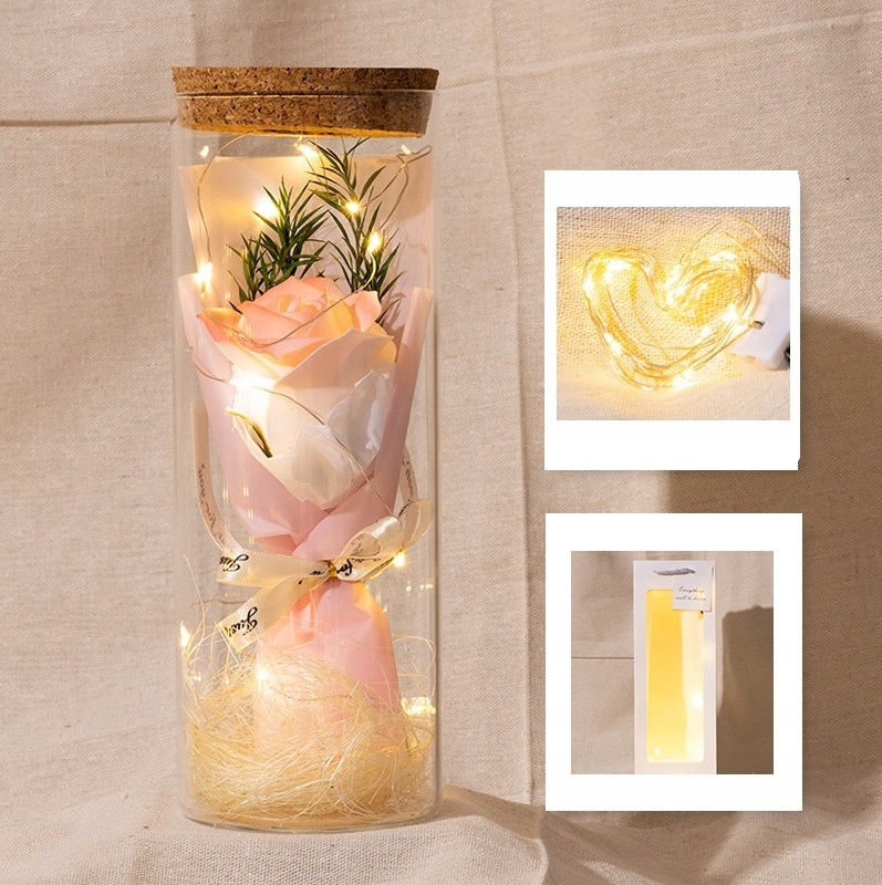 ВІЧНА ТРОЯНДА З АРОМАТОМ У СКЛІ СВІТИТЬСЯ БУКЕТ ПОДАРУНОК ТРОЯНДІ СВІТЛОДІОДНА ЛАМПА