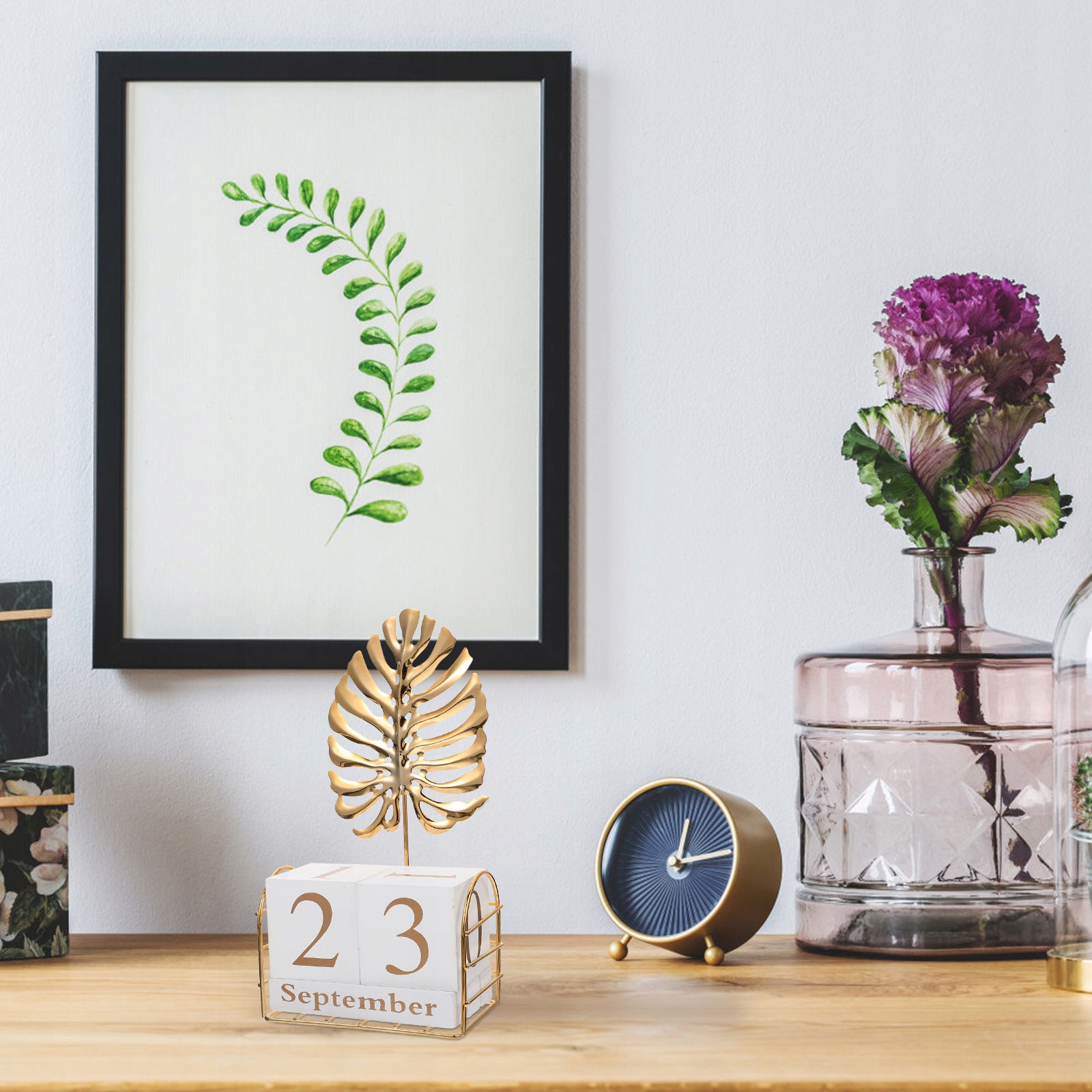 Вічний настільний календар із дерев’яних блоків Garneck із металевим пальмовим листом