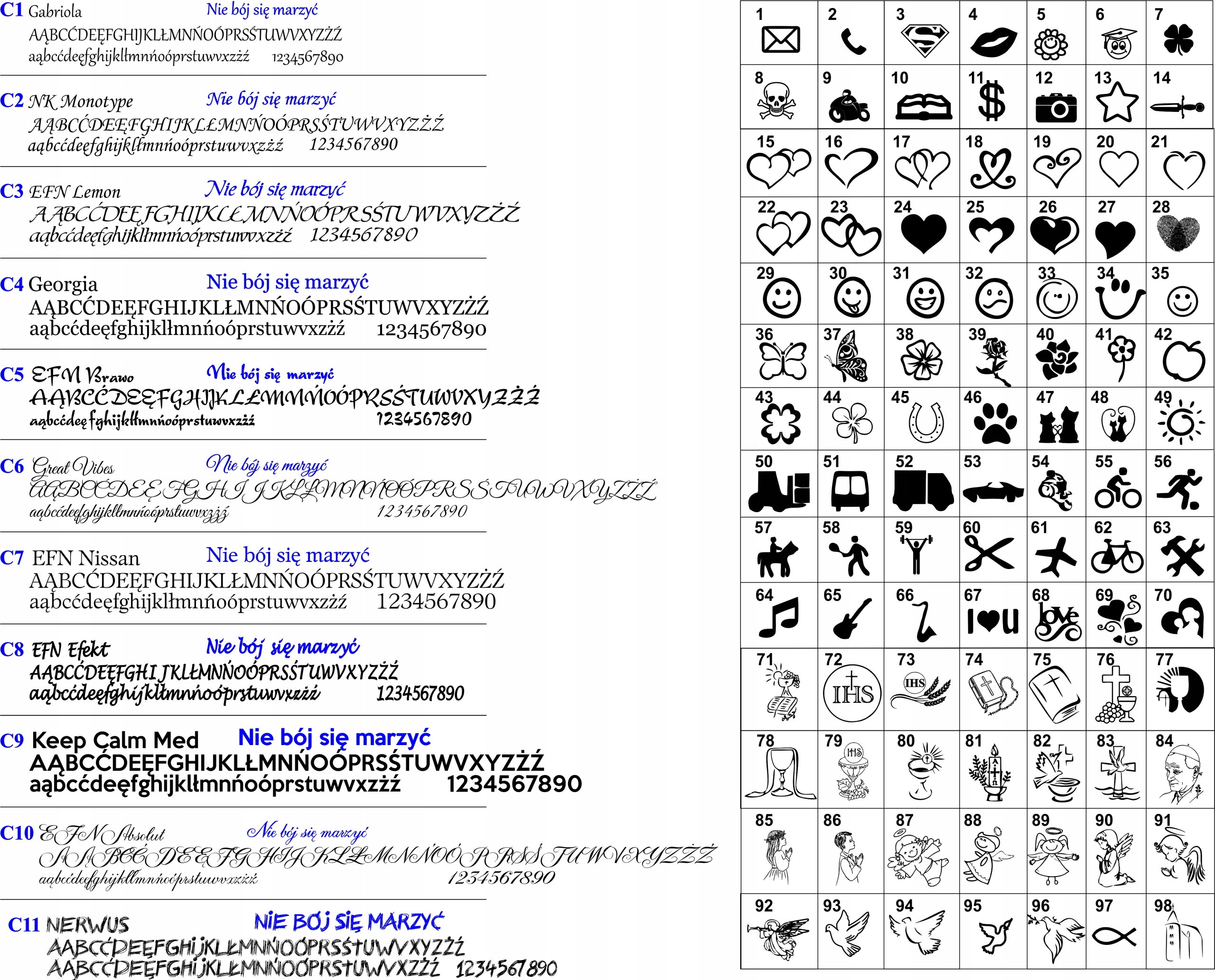 - номер шрифта