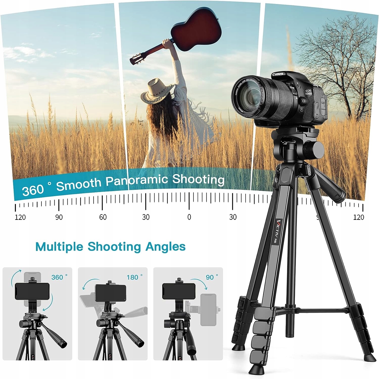 - 【3-позиционная панорамная головка】Штатив для камеры смартфона оснащен трехпозиционной панорамной головкой и удобной ручкой, которая позволяет плавно регулировать и свободно снимать под разными углами без сложных операций. Горизонтальный поворот на 360°, наклон под углом 270° и боковой поворот на 90° — вы можете попробовать различные эффекты и сцены фильма под любым углом.