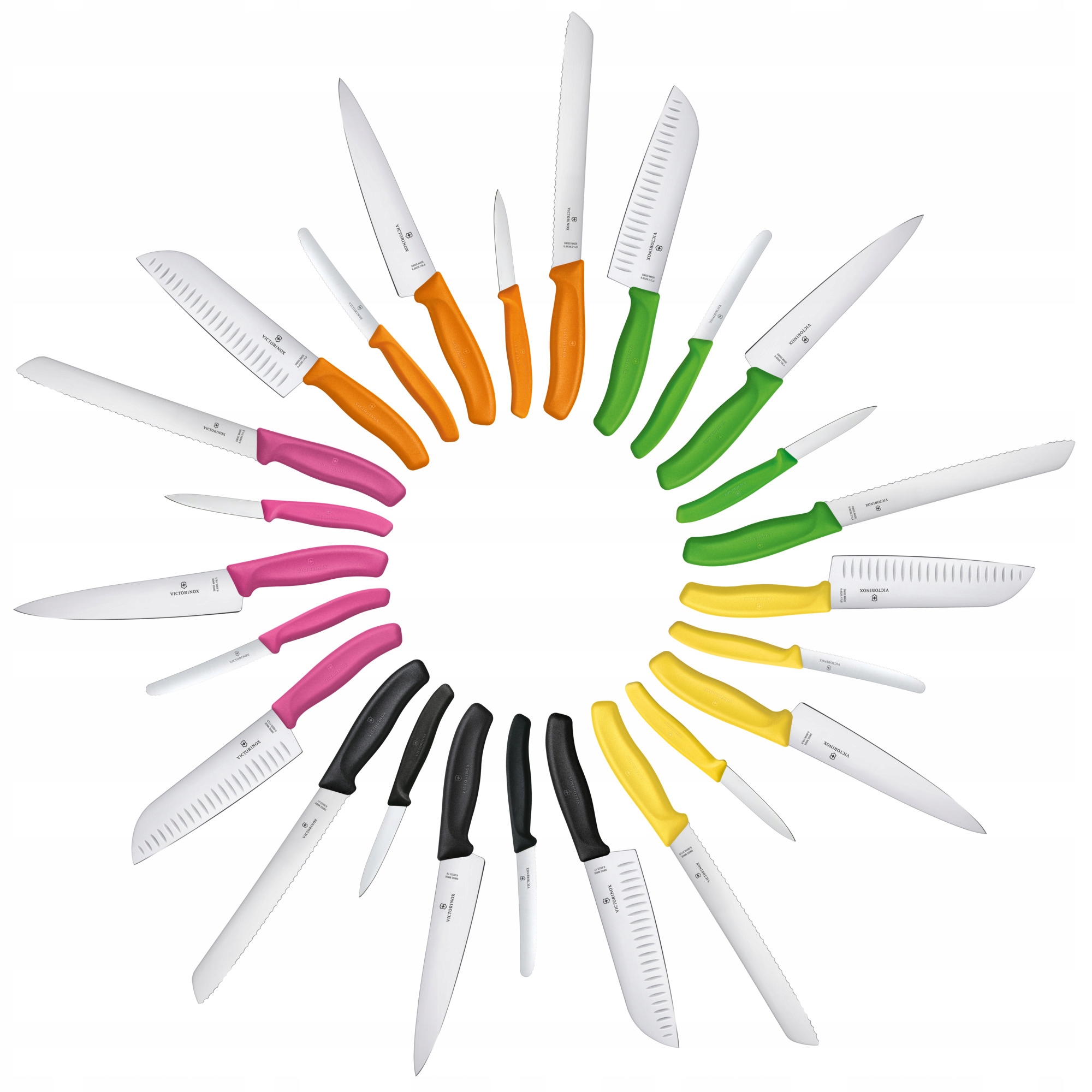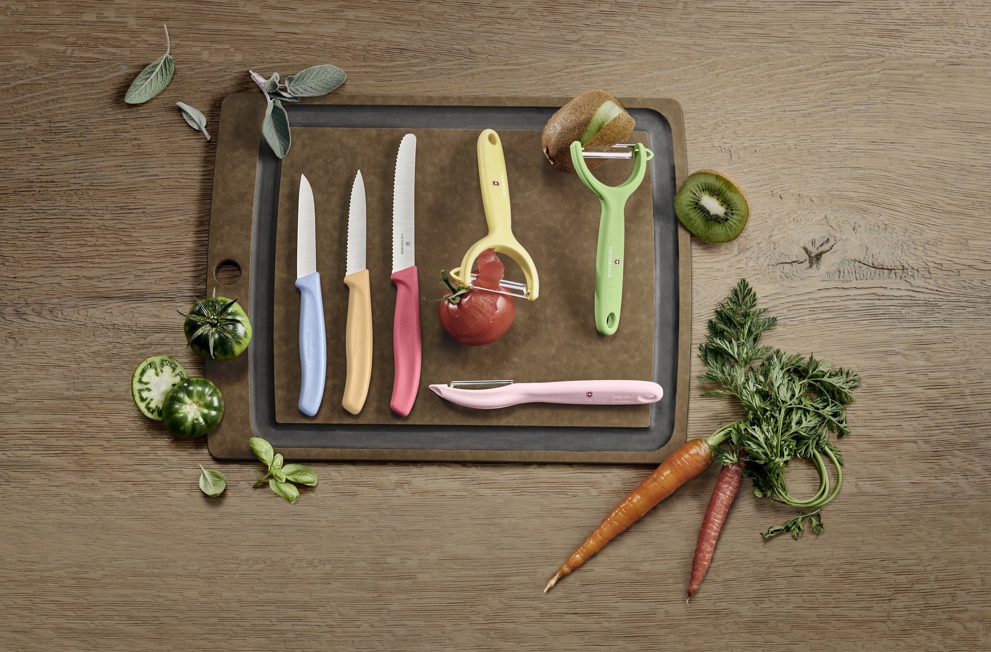 В коллекцию входят легкие, пригодные для мытья в посудомоечной машине ножи с яркими ручками — 100% производства Швейцарии.