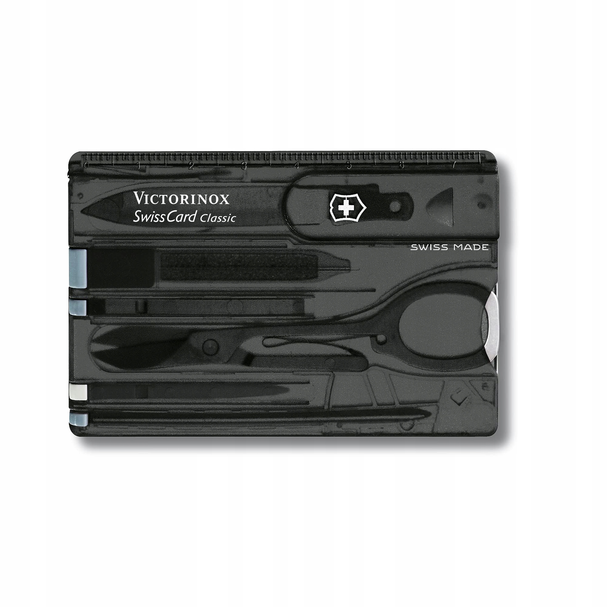 Victorinox Swiss Card, швейцарский армейский карточный нож, универсальный инструмент размером с кредитную карту, 10 функций, ручка, ножницы, черный прозрачный